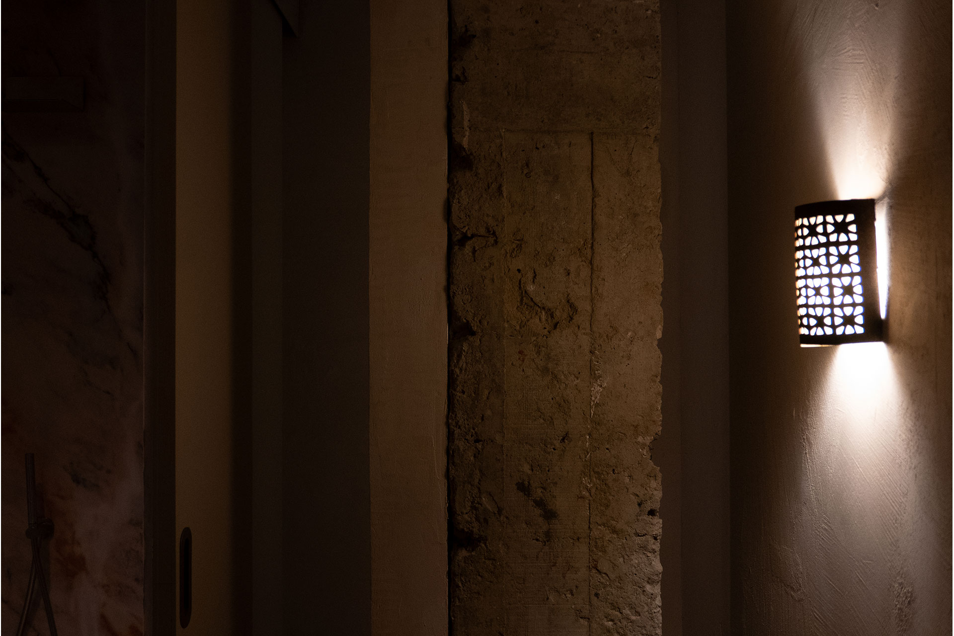 Wall sconces and some of the pendants were assembled from recycled materials and assorted pieces sourced from local markets through a meticulous hunt. Each fixture was tested on-site and transformed through a creative re-use process into a focal point of warmth and character.