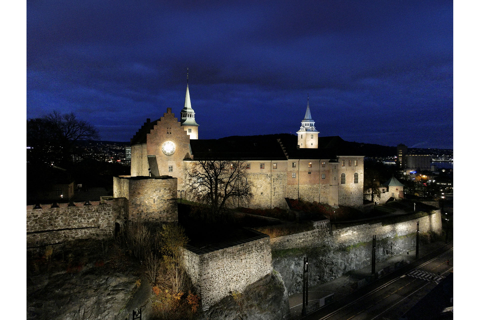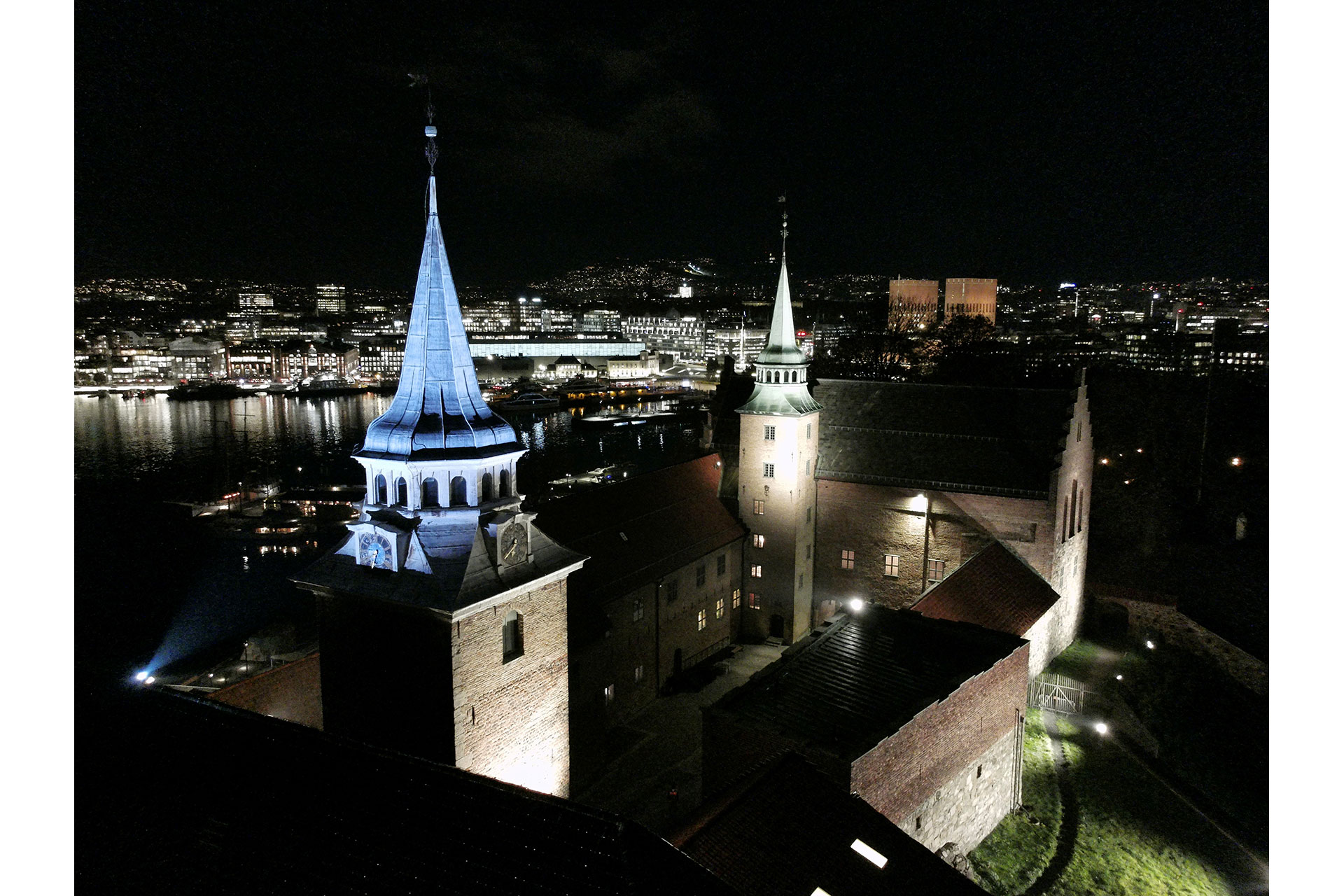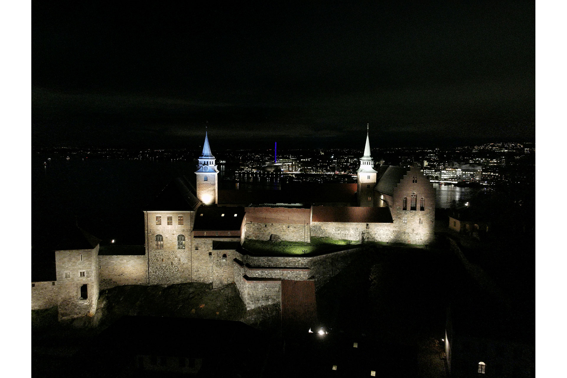 The concept is founded on restraint and contextual awareness. Rather than asserting itself through high luminance, the lighting is calibrated to allow the fortress to merge naturally into Oslo’s nightscape. Akershus Fortress forms part of Rådhusplassen together with Oslo City Hall and the National Museum, and the lighting design acknowledges this urban hierarchy.