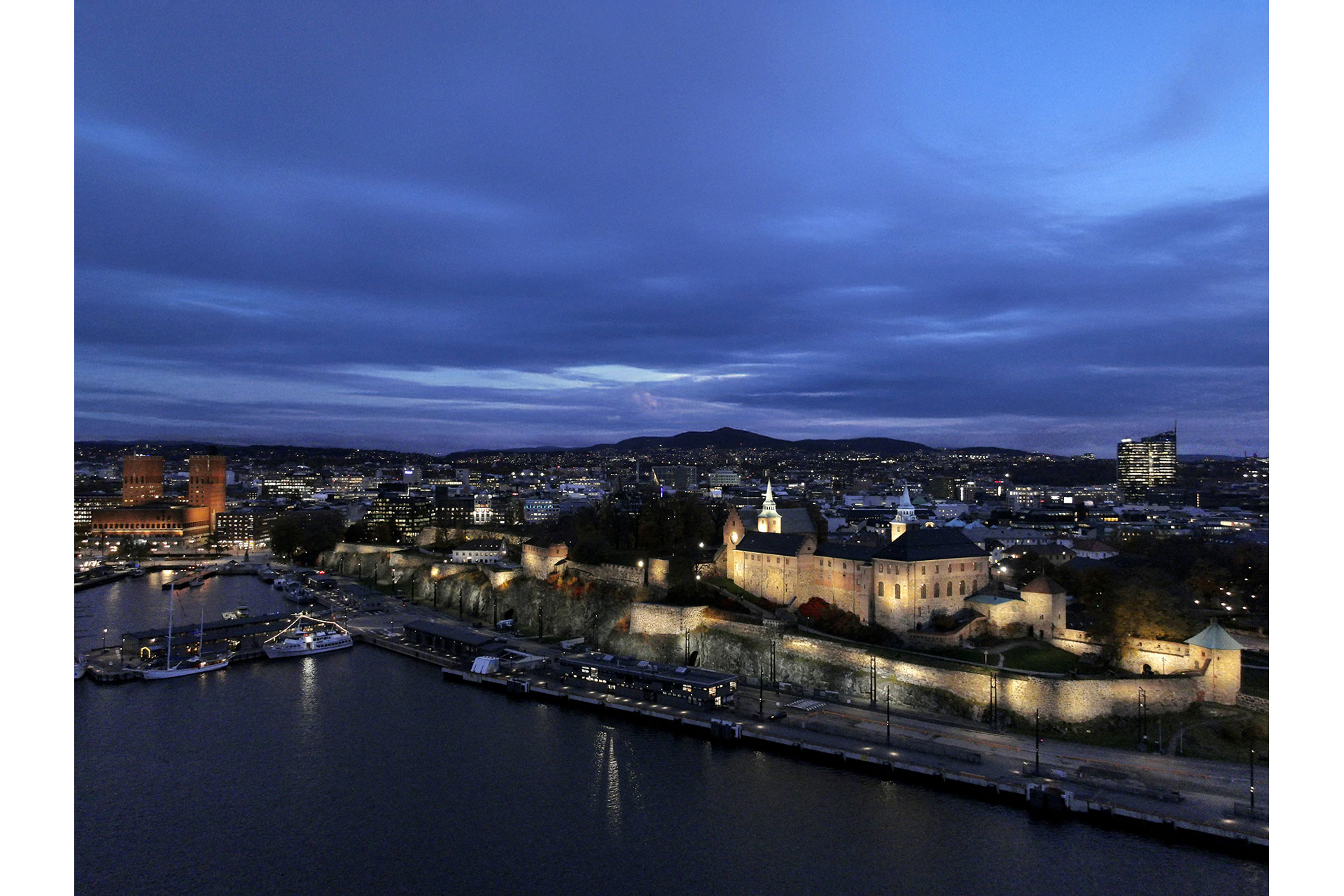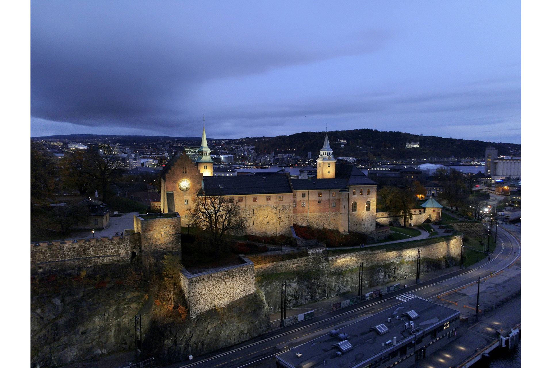 The fortress is not intended to compete for visual dominance, but to serve as a calm presence that allows Oslo City Hall to remain the primary focal point of the square. Through controlled illumination, balanced contrasts, and precise articulation of volumes, the fortress remains clearly recognisable, demonstrating that identity is not dependent on brightness alone.