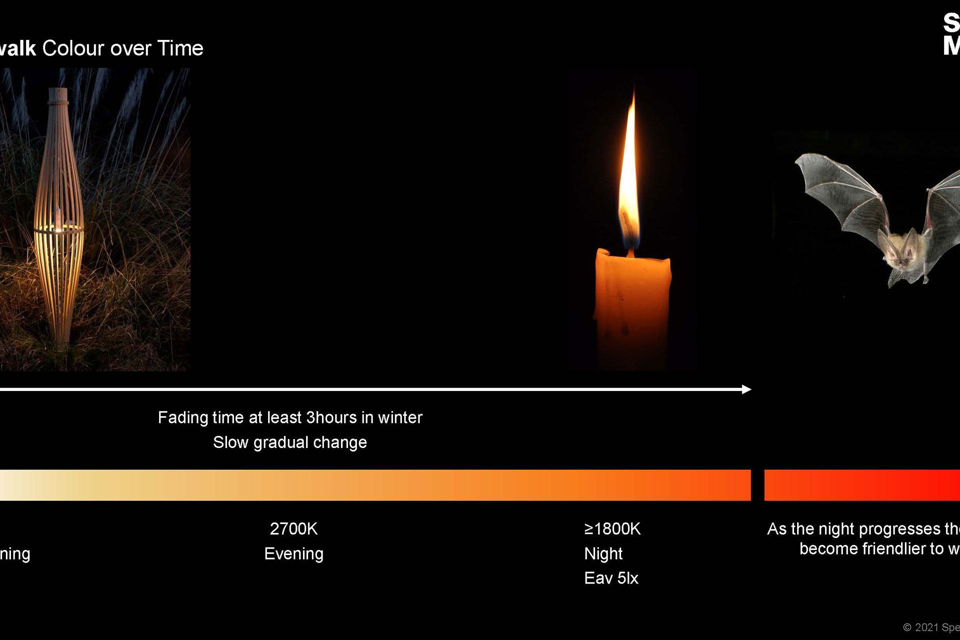 This experience is underpinned by precision and ecological care. The docklands are a designated bat corridor, and the wetlands home to a thriving population of birds and insects. The lighting adapts to the natural cycles of these creatures with subtlety: shifting in colour temperature and intensity through the seasons. During the darker winter months when bats hibernate, the lighting comes on half an hour after sunset at a warm 3000K to support pedestrians, gradually dimming and warming as night progresses. During summer, when bats are active and most commuters travel in daylight, the light comes on at minimal brightness in a very warm colour to mitigate impact.
