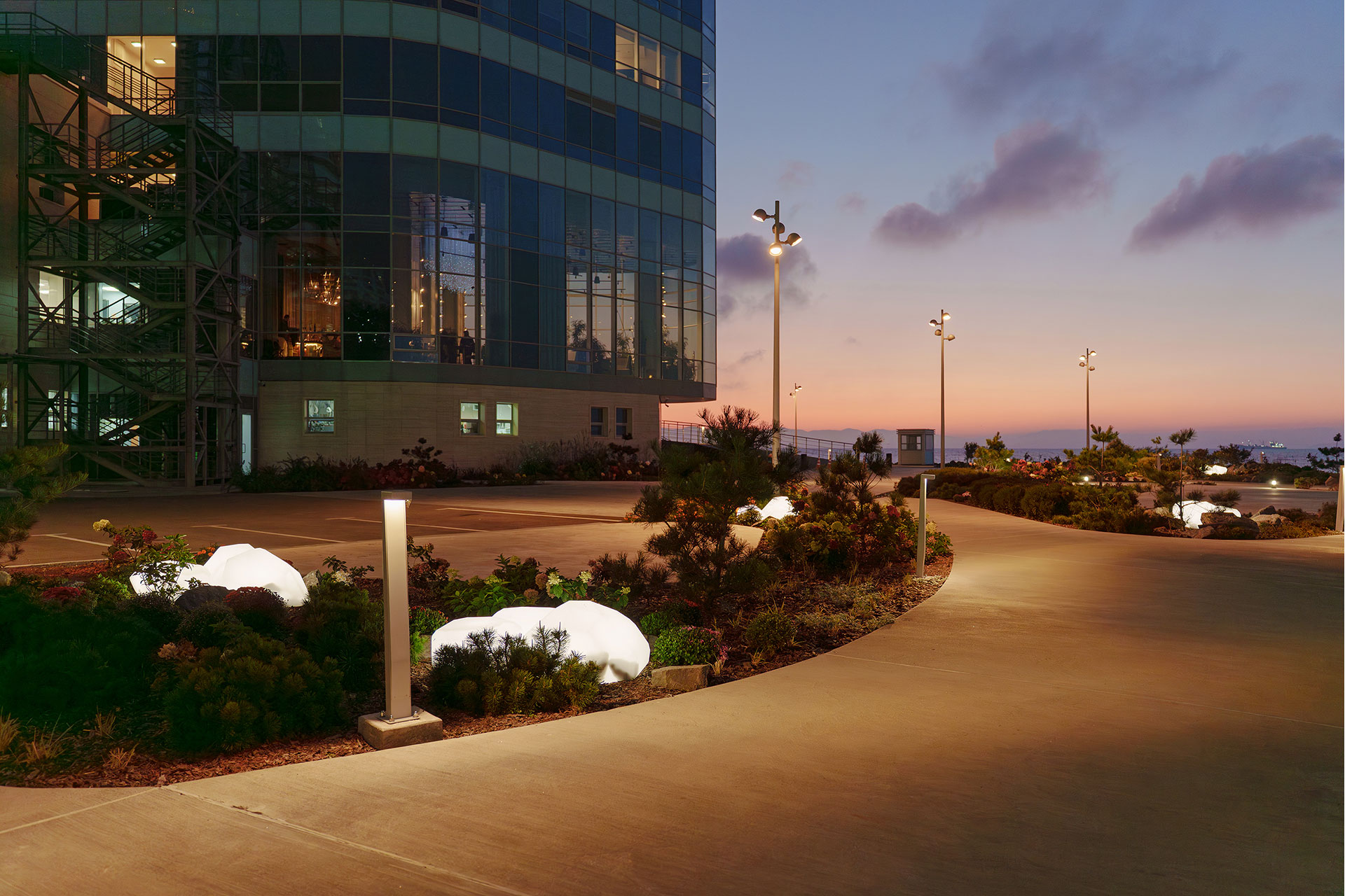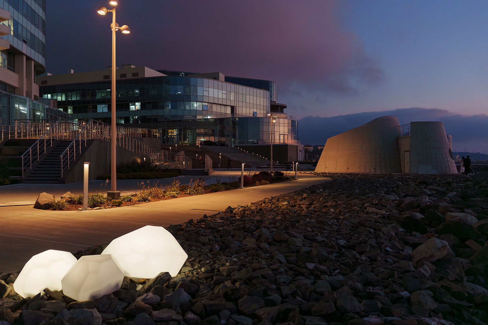 Cape Burny is a prominent headland where architecture, landscape, and the Pacific horizon converge. The landscaping project, developed by the architectural bureau Wowhaus, takes into account the climatic and seismic characteristics of the Far Eastern region. The lighting design provides a context-sensitive, functional, and resilient solution for a site exposed to extreme marine conditions.