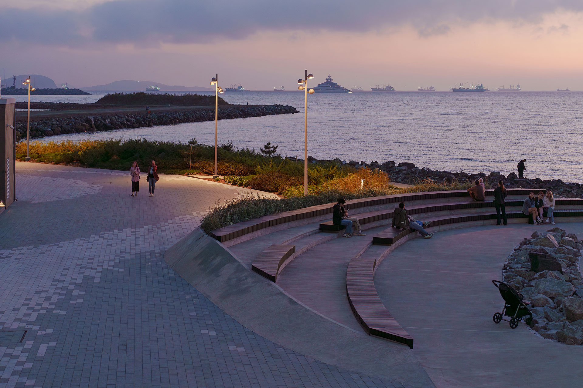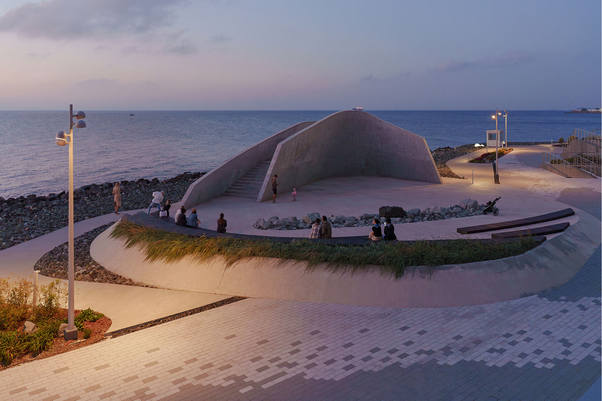 The Cape Burny lighting scheme demonstrates how subtle and contextual lighting can enhance a public coastal space without dominating it. By removing visual clutter, embedding luminaires into landscape elements, and carefully controlling photometry, the project establishes a coherent nighttime identity. The lighting design enables a seamless dialogue between architecture, nature, human activityю.., and sometimes music.
