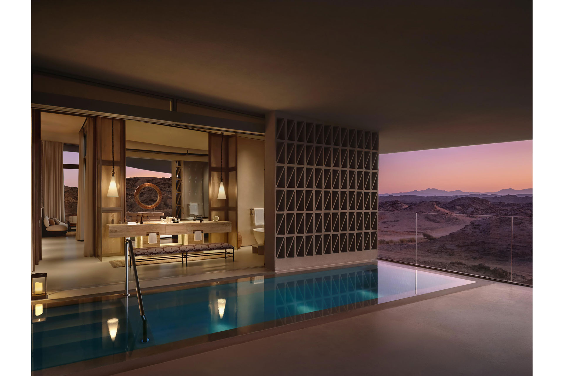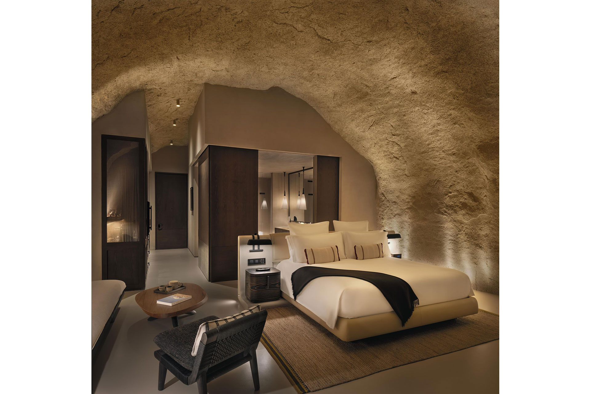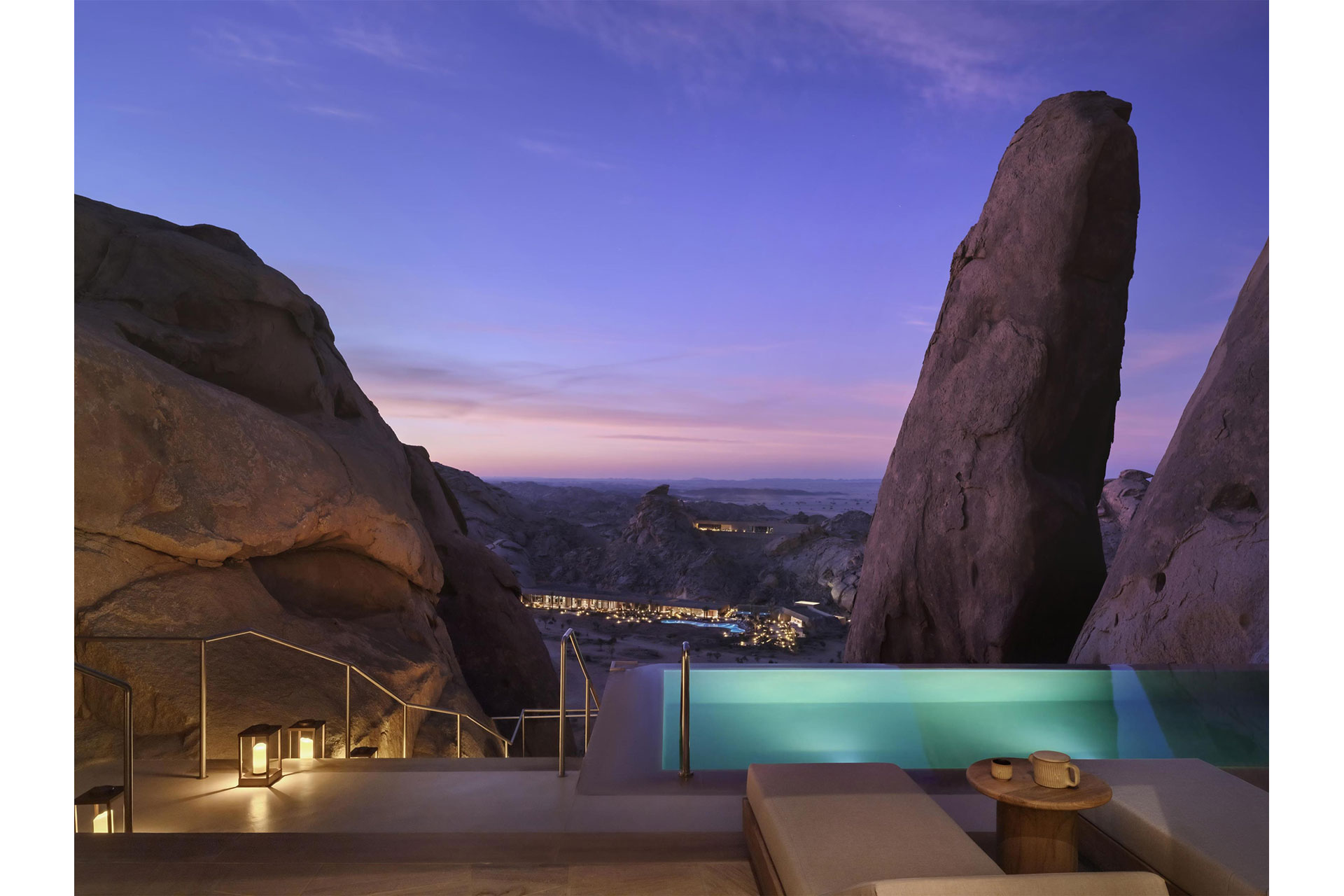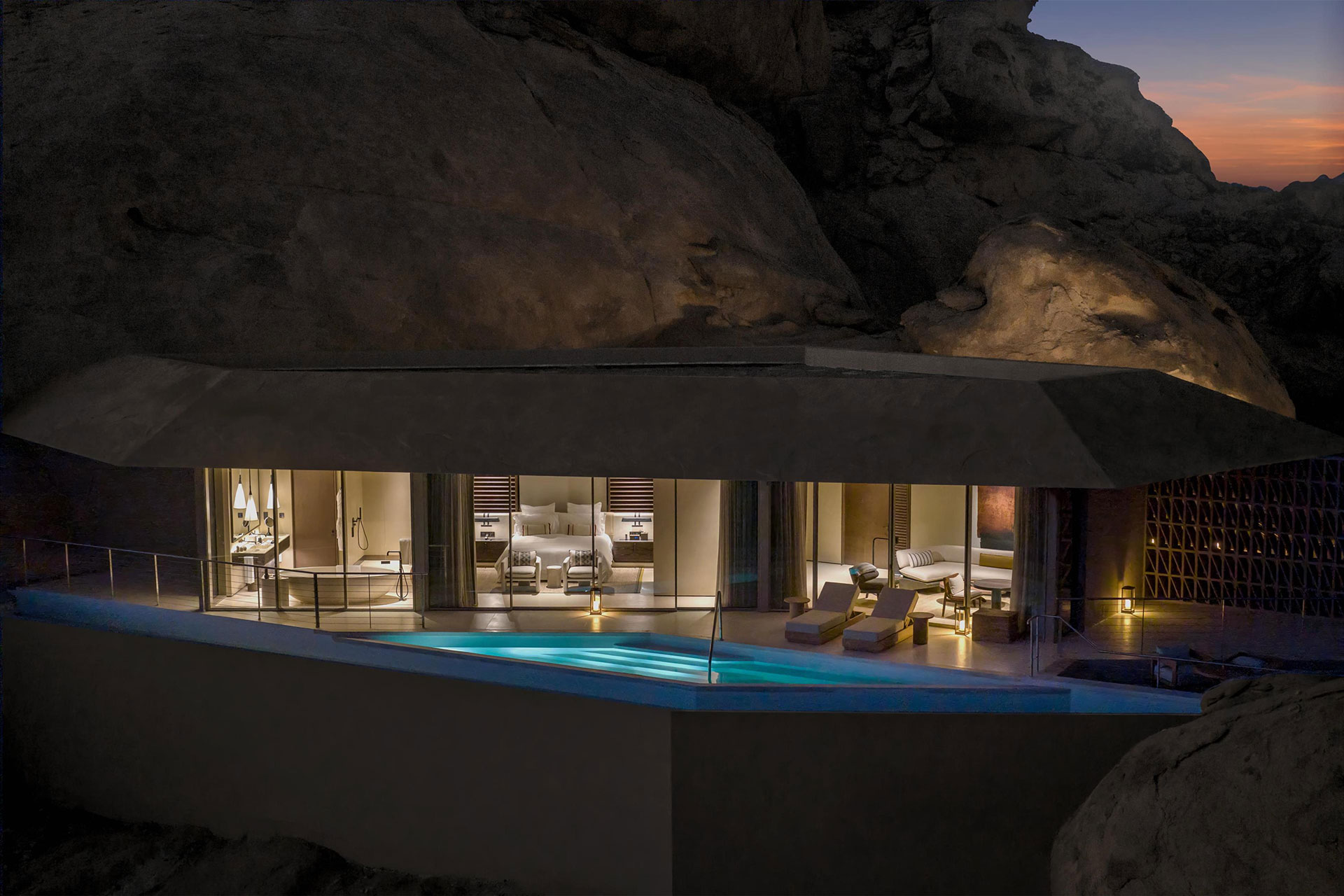 Located in a hidden valley in western Saudi Arabia, the Desert Rock Resort is a one-of-a-kind retreat, fully owned and operated by Red Sea Global. It stands out for its complex design, where architecture seamlessly merges with the mountain, and guestrooms are carved directly from the rock.