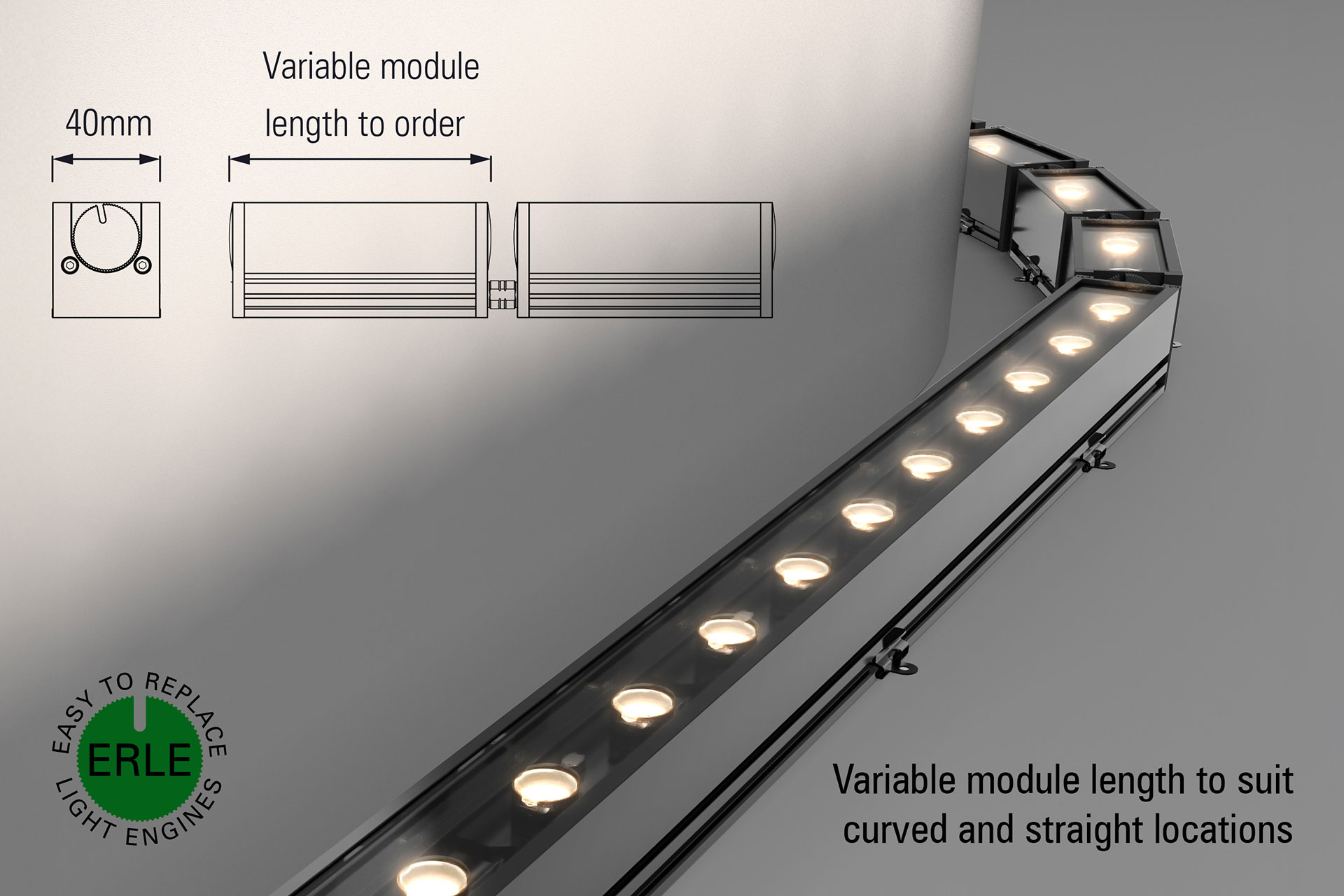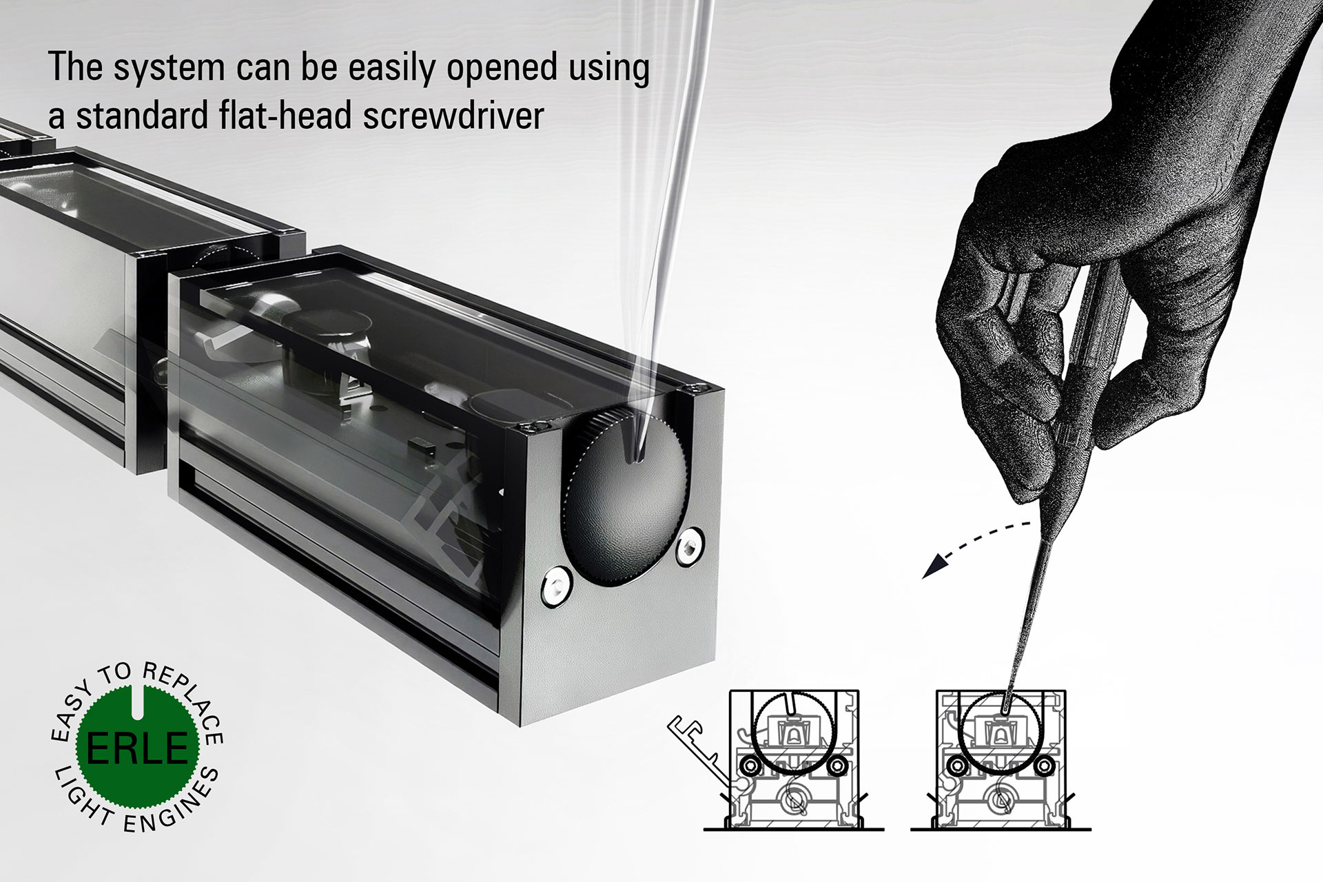 The Easily Replaceable Light Engines (ERLE) can be replaced without using any specialist tools or requiring the system to be removed from its mounting location.