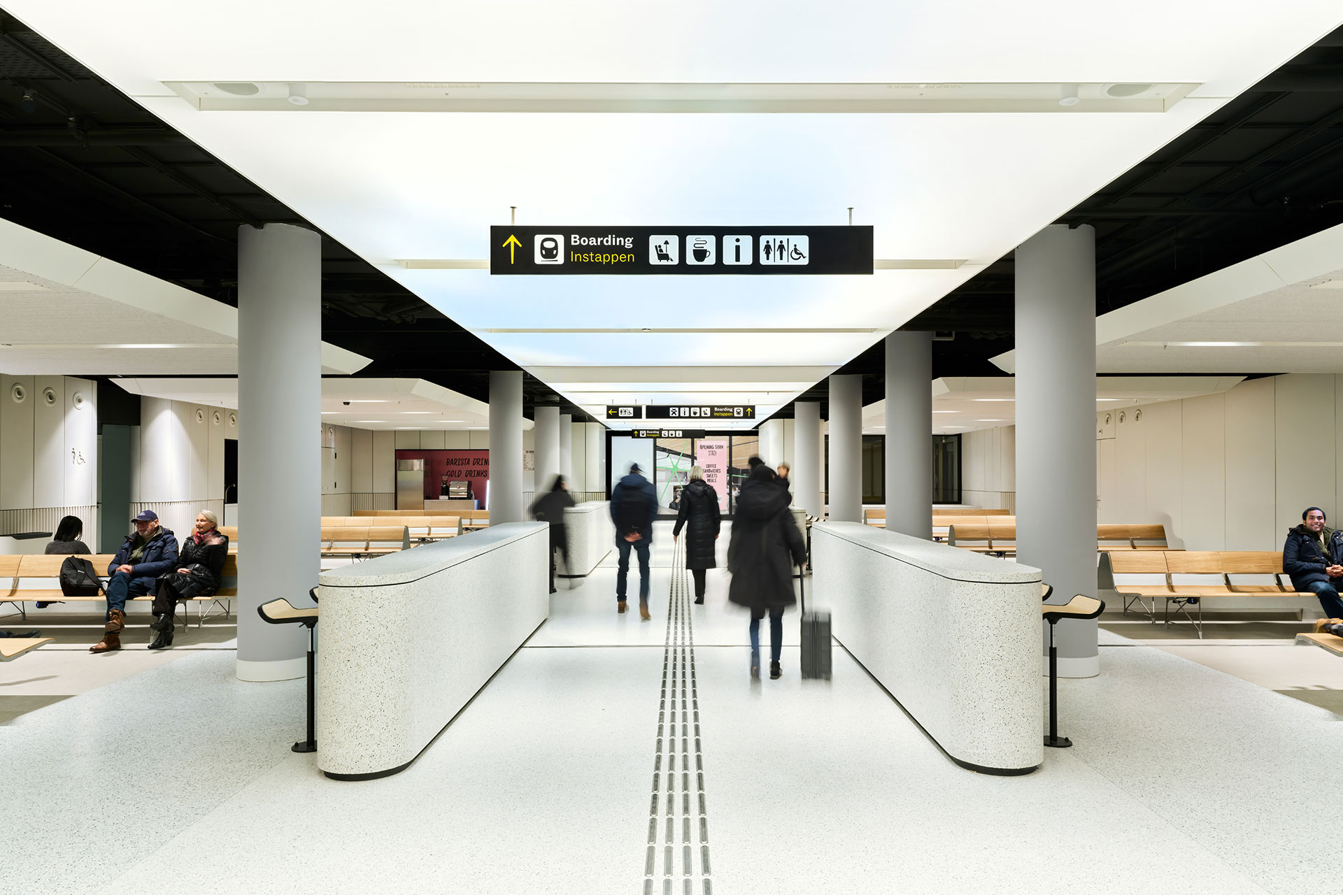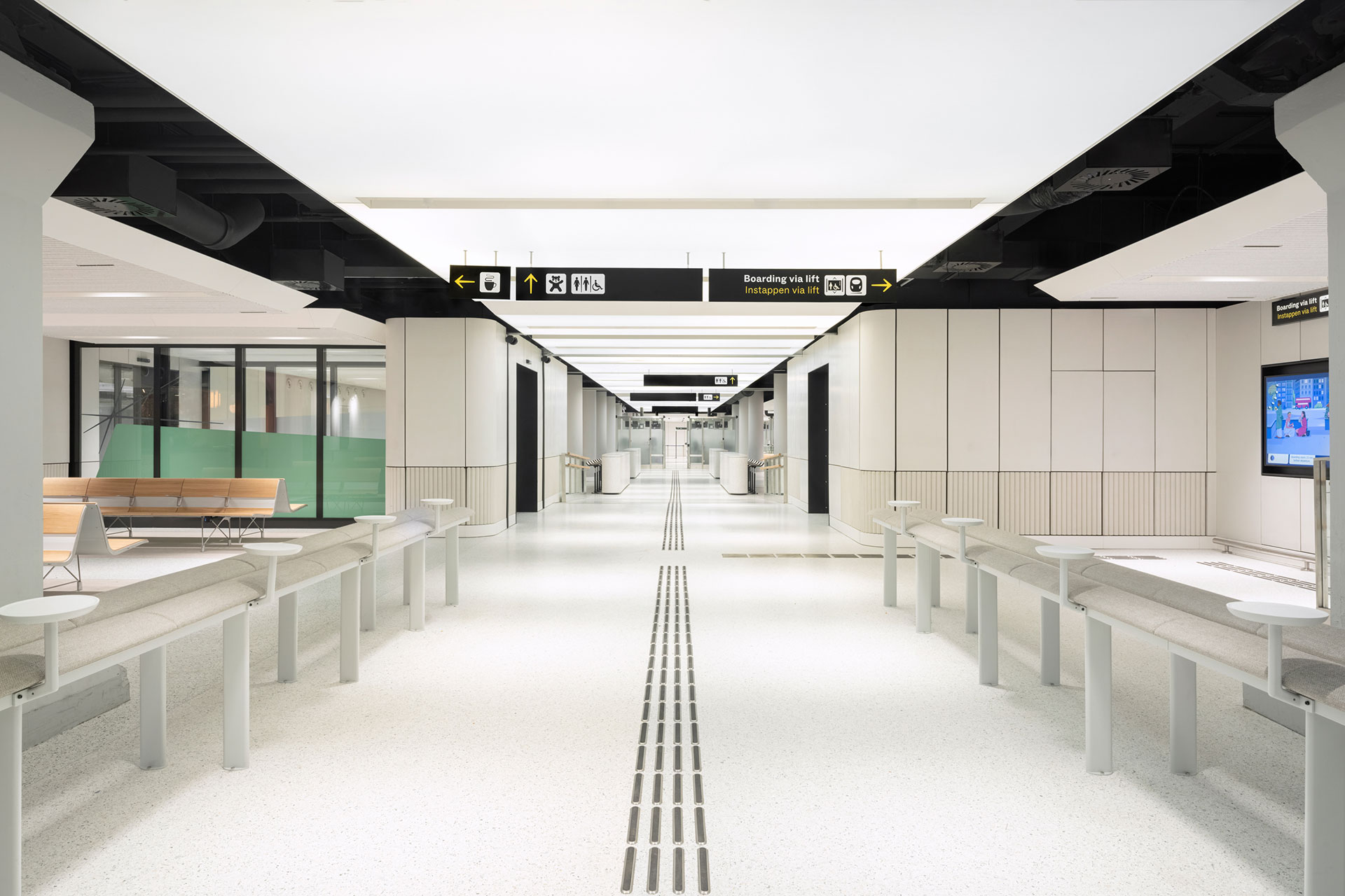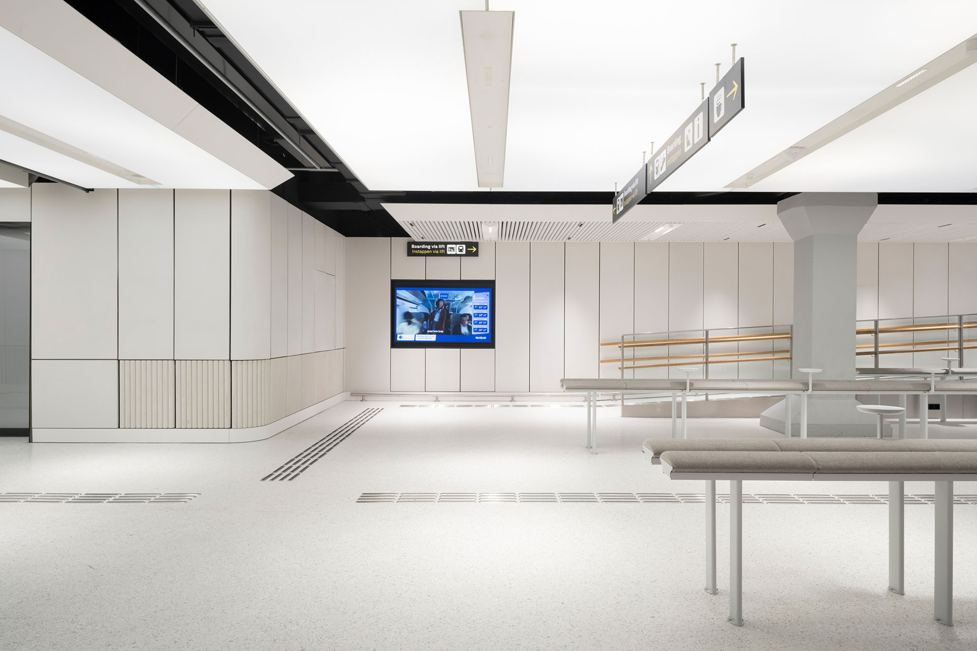 It supports in a subtle way the communication and creates a pleasant daylight atmosphere for passengers awaiting their train.