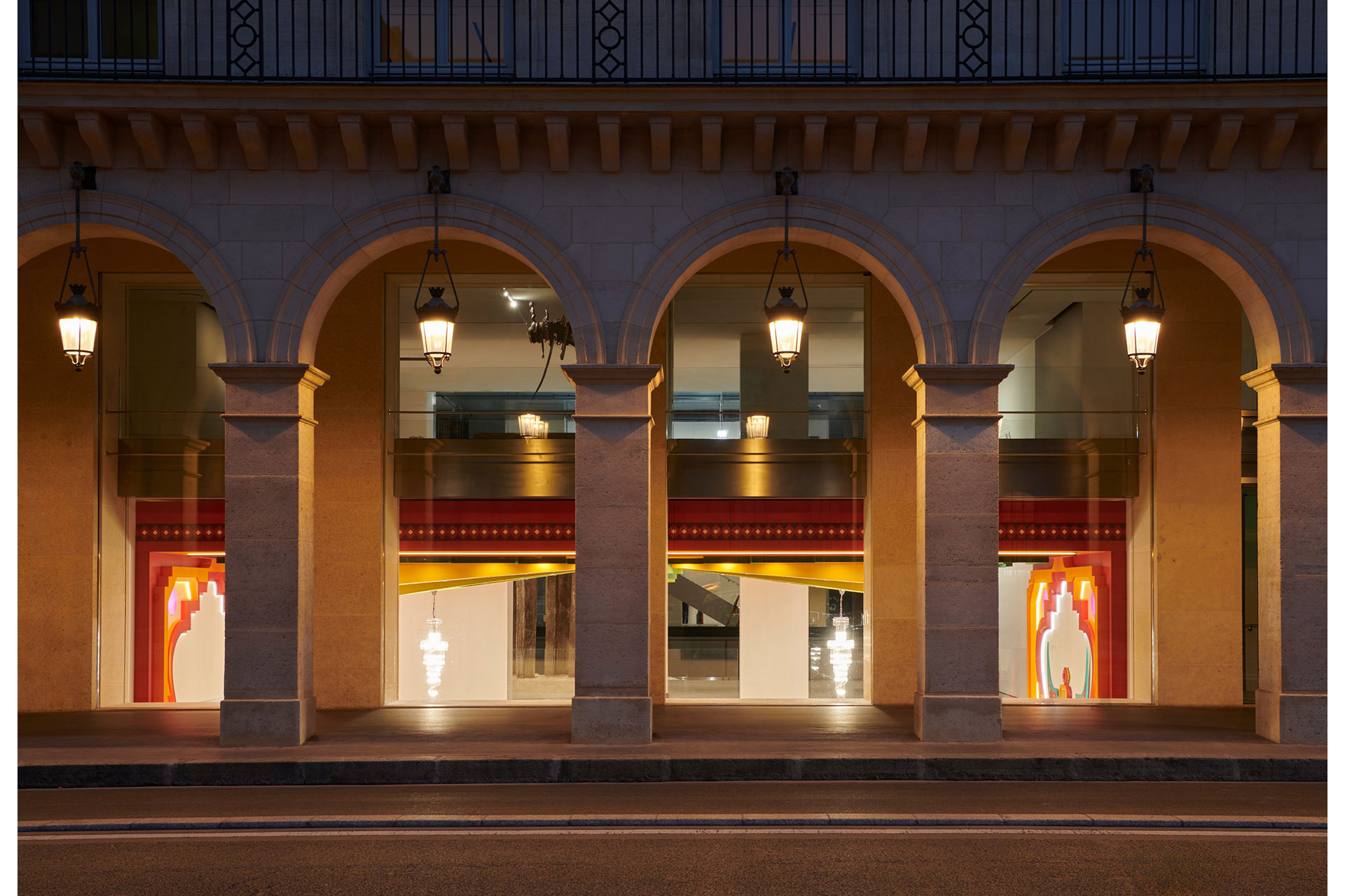 L’Observatoire International, the lighting designer of the project, had to reflect both museographic requirements and architectural identity, while providing a technical and functional response that could adapt to multiple settings. The first step was to consider light in terms of its horizontal perspectives— those that span from Rue de Rivoli to Rue Saint-Honoré—through the interplay of transparency between passageways and moving machinery.