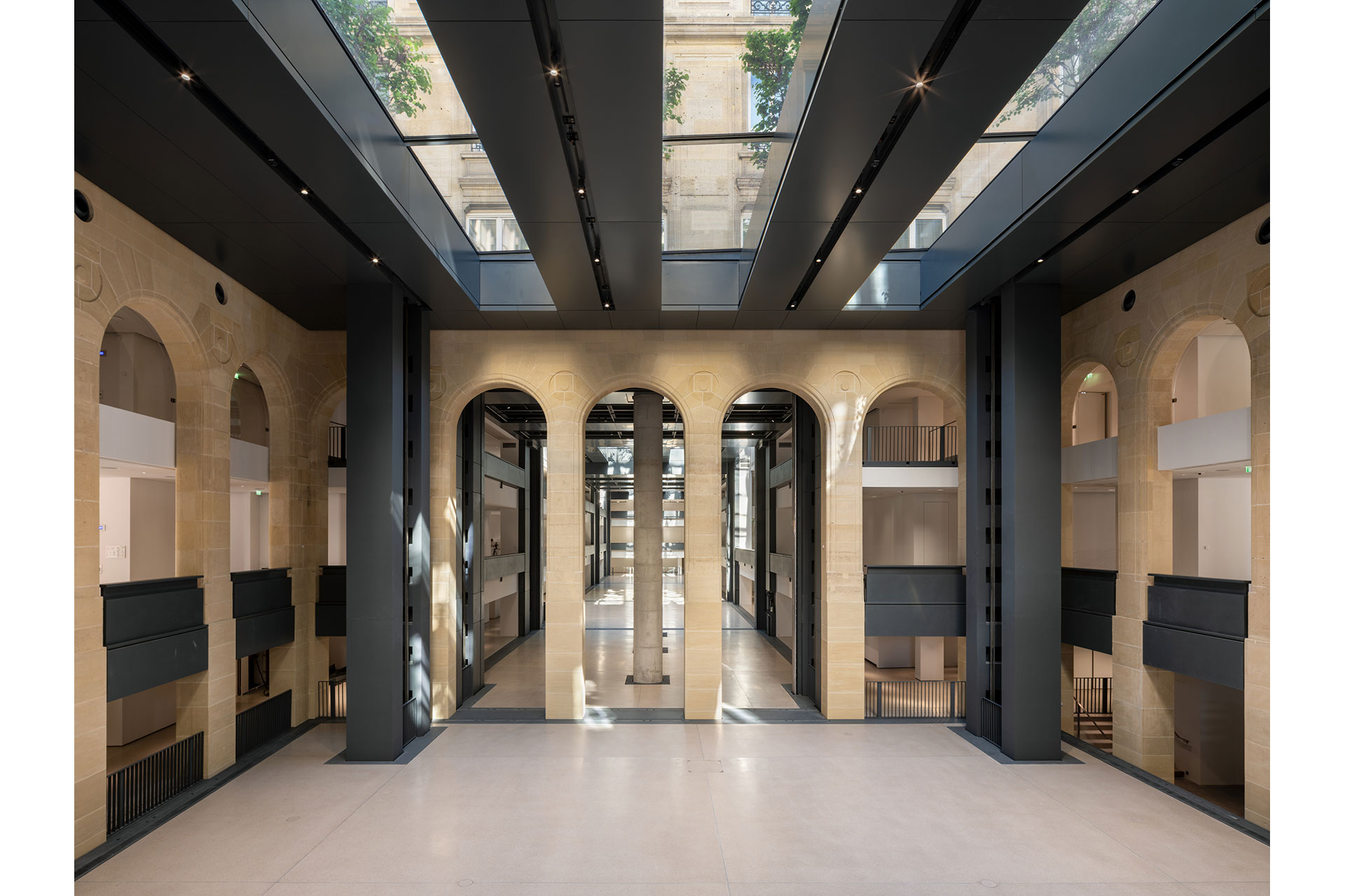 With a surface of 8 500 m2 of public space, the new Fondation Cartier by Ateliers Jean Nouvel unfolds across five platforms and multiple levels spread over three floors, offering unique curatorial flexibility.