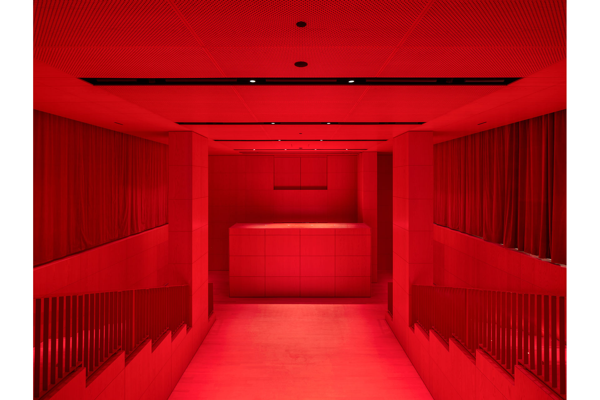 At the corner of Rue de Marengo and Rue Saint-Honoré, the same system continues into the auditorium. A space that echoes the Maison’s signature aesthetic through its lacquered “Cartier red” shell and where light washes the surfaces while offering visitors an immersive and surprising experience.