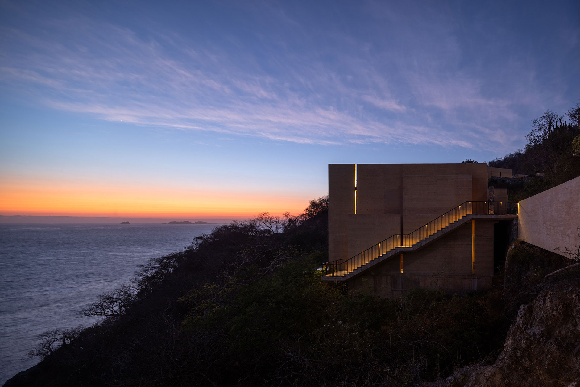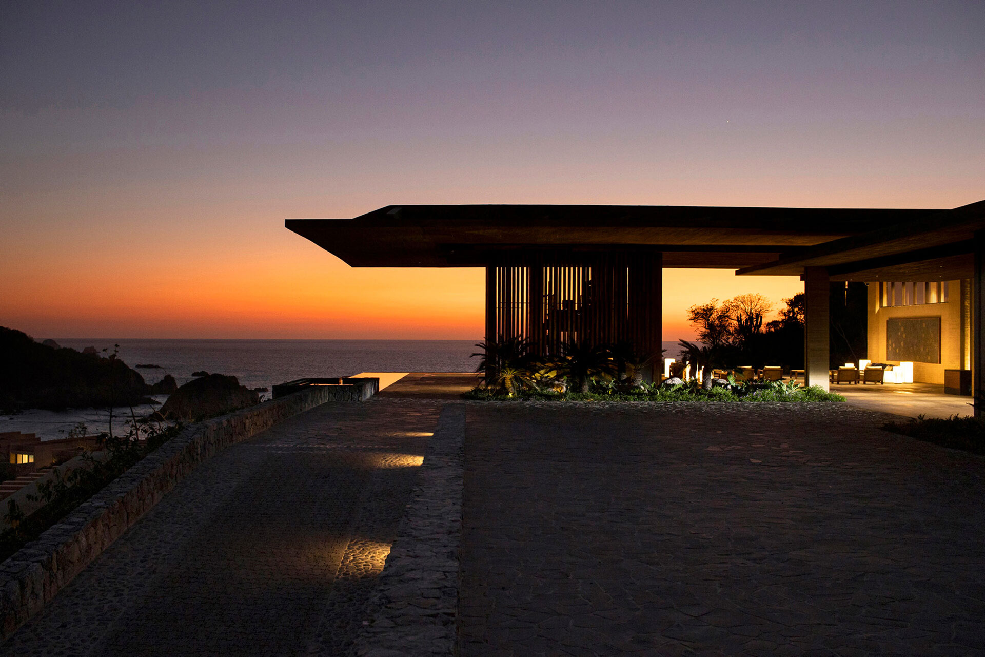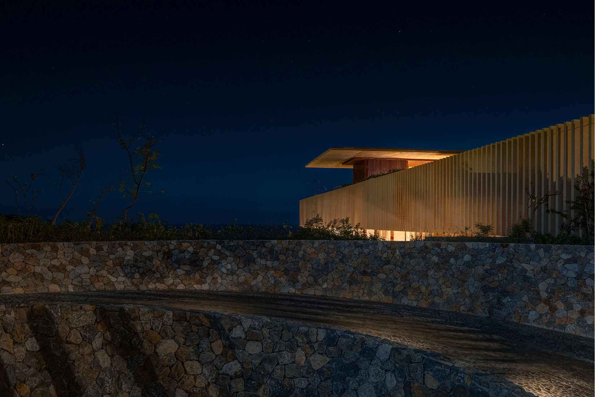On Mexico’s Pacific coast, within a 3,000-acre reserve where jungle meets the sea, a hotel of 160 rooms and 63 villas faced a delicate challenge: achieving scale without disturbing the balance of nature or the depth of darkness. The response was an architecture that adapts rather than imposes, organized on three levels—public areas at the center, villas on the slopes above, and rooms descending gradually toward the beach.