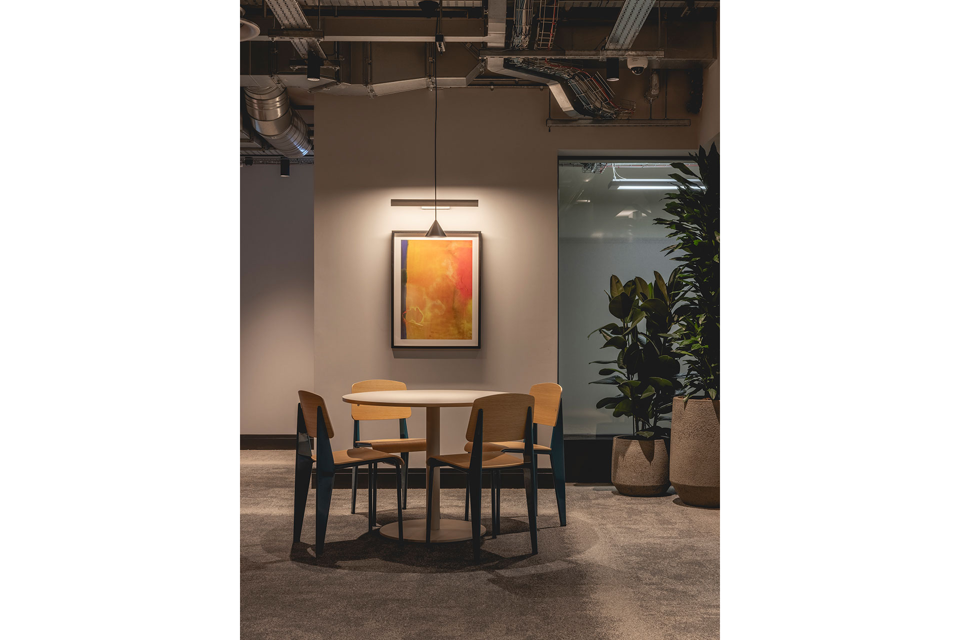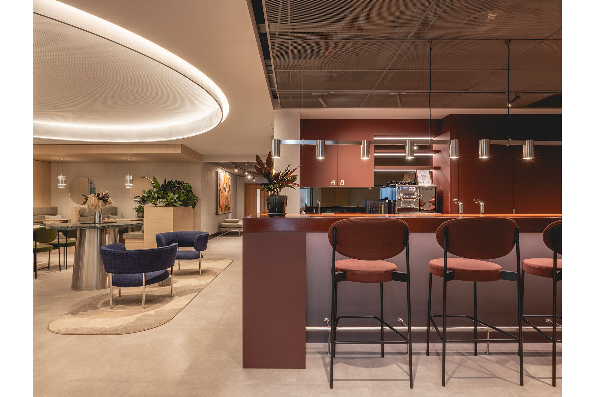 From the outset, a key ambition for the scheme was to move away from conventional lighting strategies and introduce a softer, more ambient environment that supports all-day use. The intention was to create a space that felt comfortable, welcoming, and visually rich without dependence on harsh downlighting or overly uniform illumination. This approach was particularly important given the limited availability of natural light, requiring the artificial lighting to work harder to establish a sense of openness and wellbeing.