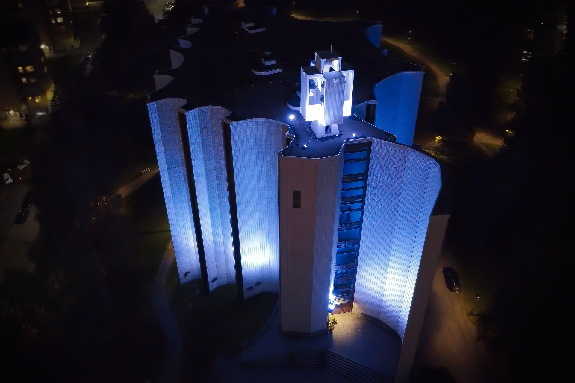 The exterior lighting renewal was designed by WhiteNight Lighting Oy with the aim of reinforcing the original architectural idea, in which light is an integral part of the building’s formal language. The lighting is not conceived as an applied effect, but as a continuation of the architecture itself, revealing the plasticity of the concrete surfaces through light and shadow.