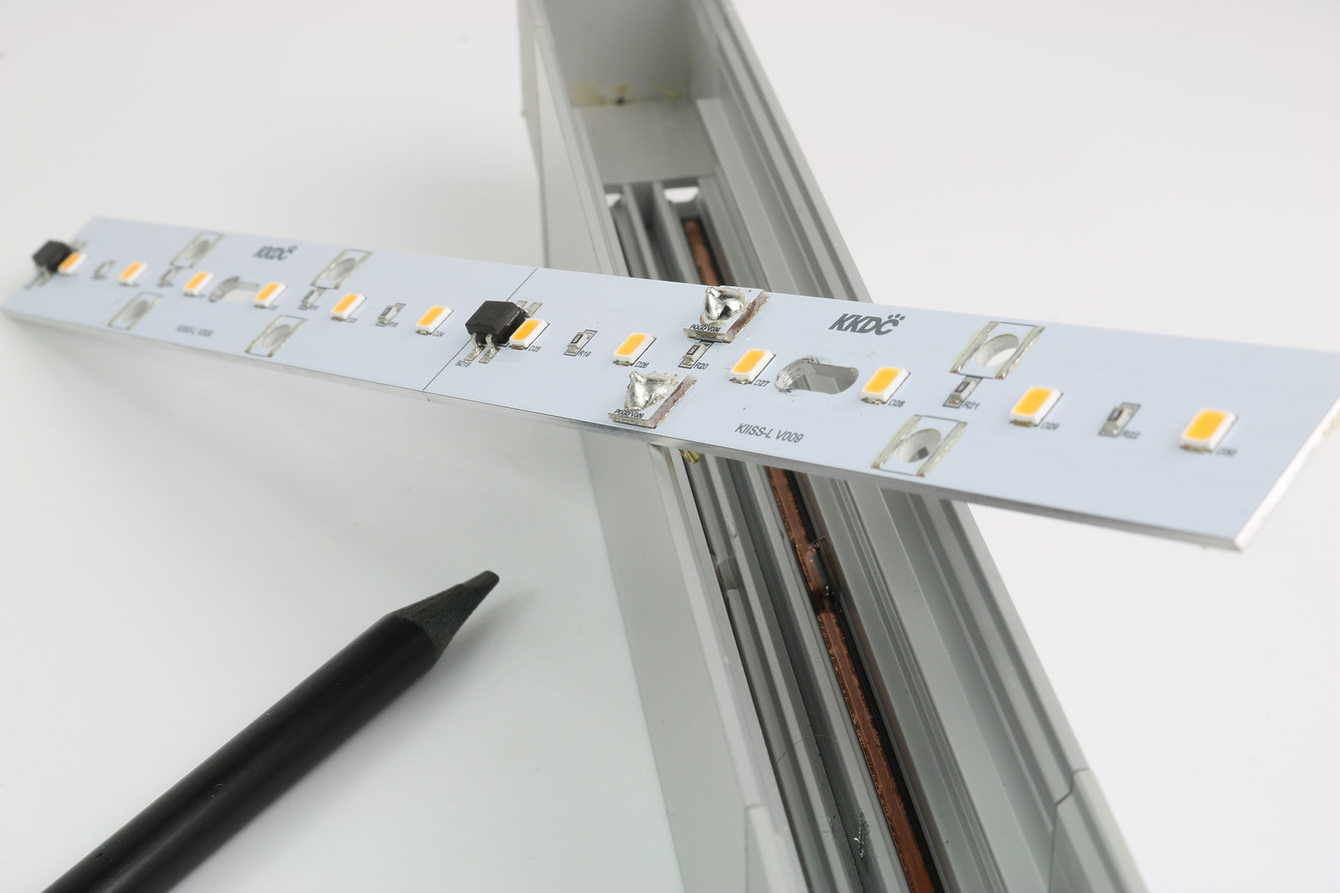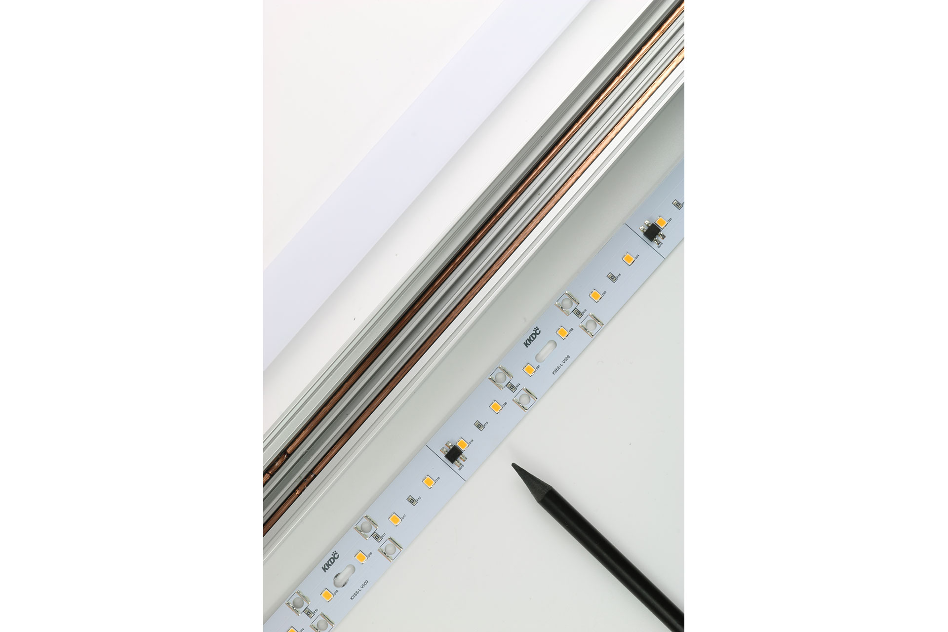 As a modular lighting system with removable and recyclable LED boards, KIISS-L can be used to create continuous linear runs up to 10m off a single feed. The LED boards ‘E020’ and ‘EP30’ include a 10-year warranty and are screw-fixed within the 24V powered profile to allow simple upgradability of the light source long into the future – Old modules are then returned to KKDC to be repurposed in accordance with the KKDC ‘RE.VO’ refurbishment scheme.