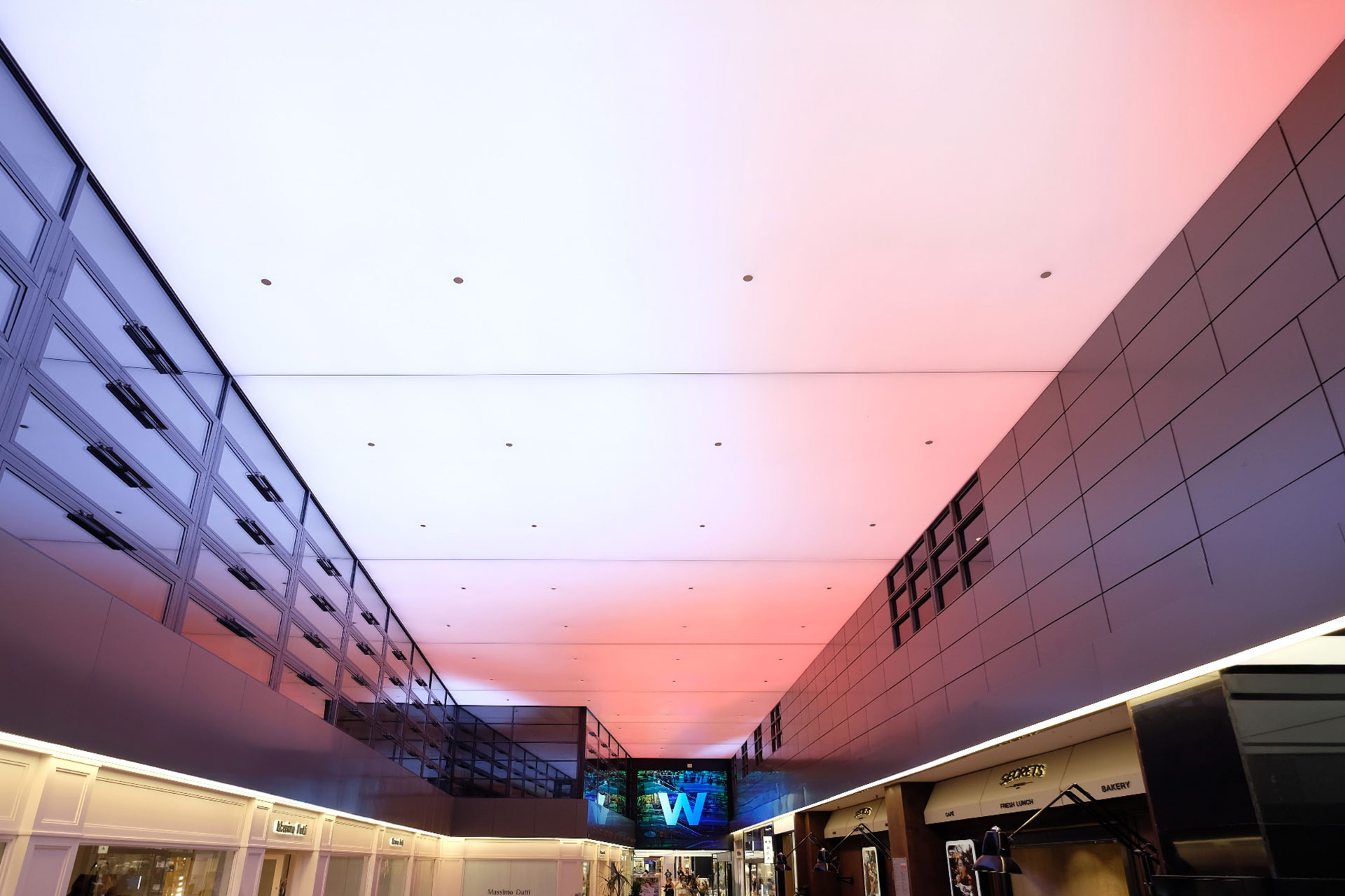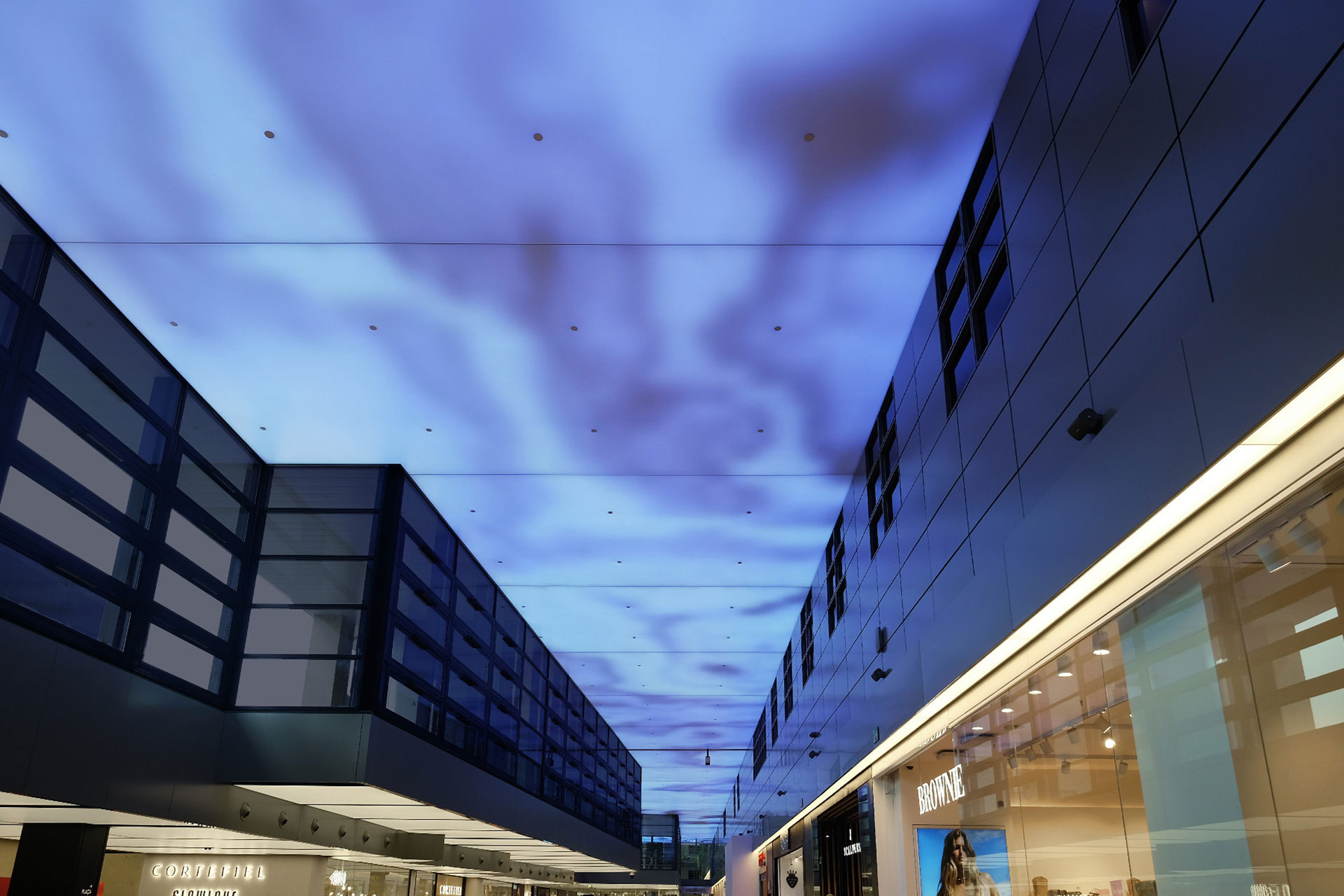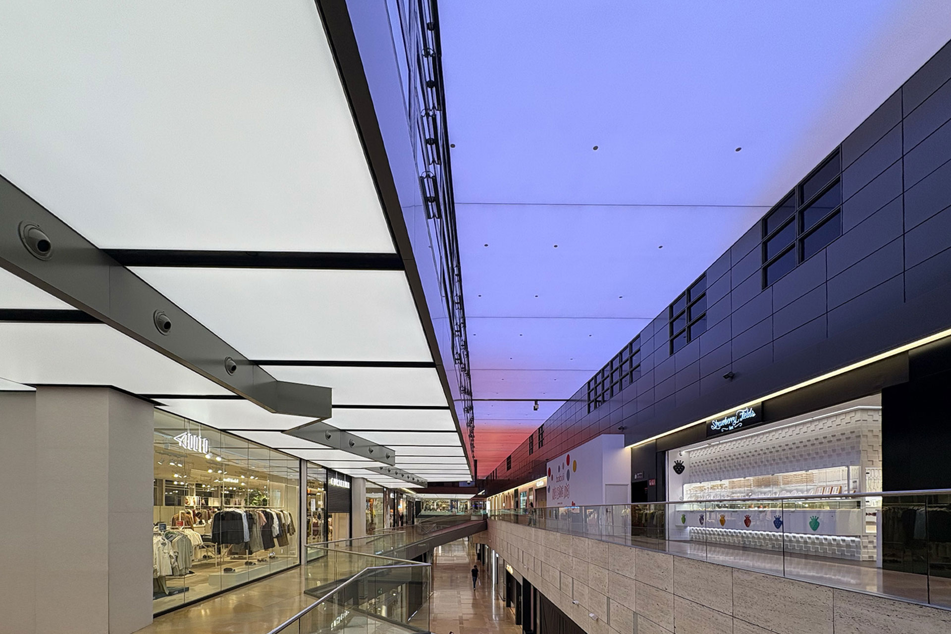 A luminous transformation redefines the interior, turning the ceiling into an active architectural device that evokes the sensation of being outdoors. More than a restyling, the intervention adapts the building to new ways of inhabiting retail, where the center itself becomes an experience.