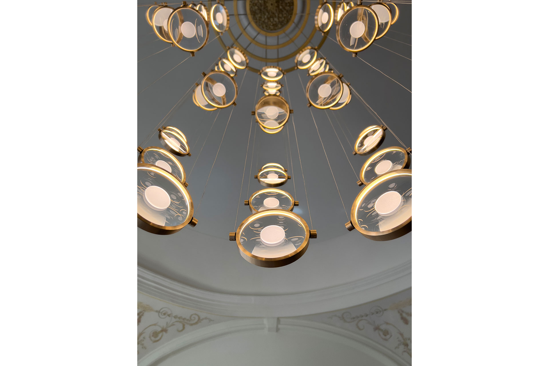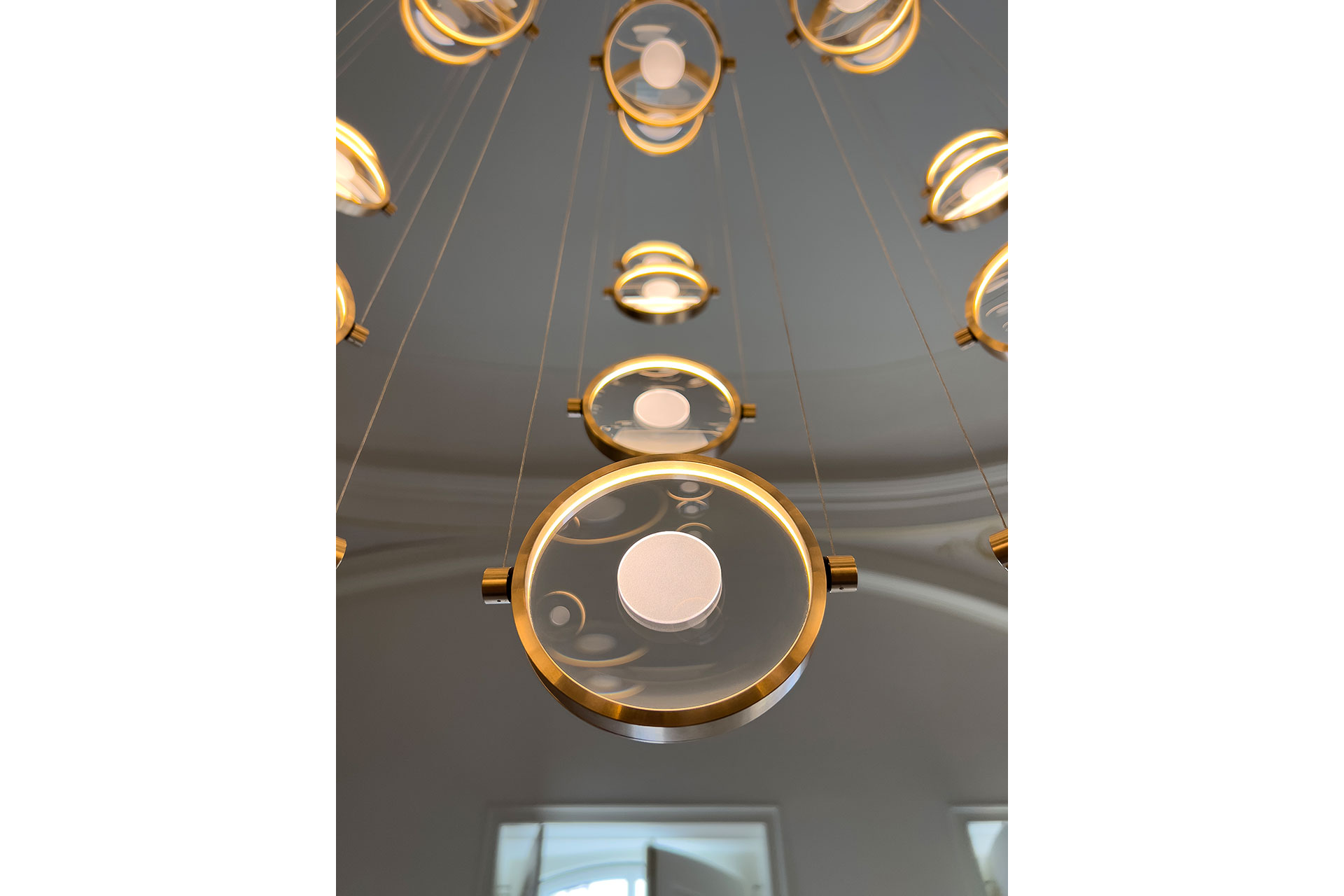 At the heart of LUPE is the 360º rotating lens. Suspended delicately by twin wires or embraced by a slender structural frame, each “magnifying glass” is fully adjustable. This allows for total control over the direction and rhythm of light. Users can pivot the optics to precise position to highlight architectural details, create task-oriented focus, or bounce light to soften the ambiance. This inherent flexibility gives the collection a fluid sense of movement, ensuring that the light is never static, but always “shining” in its most purposeful position.