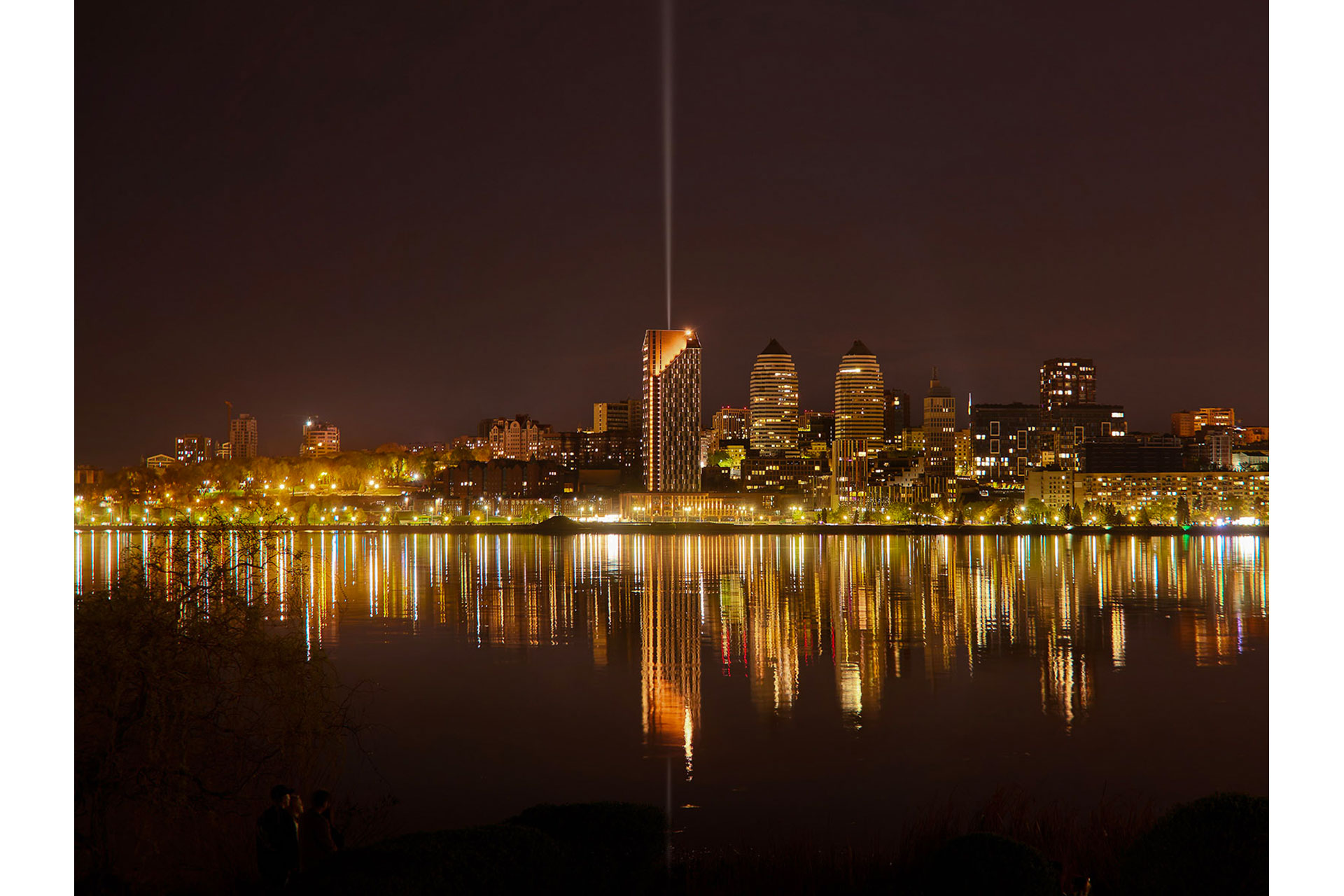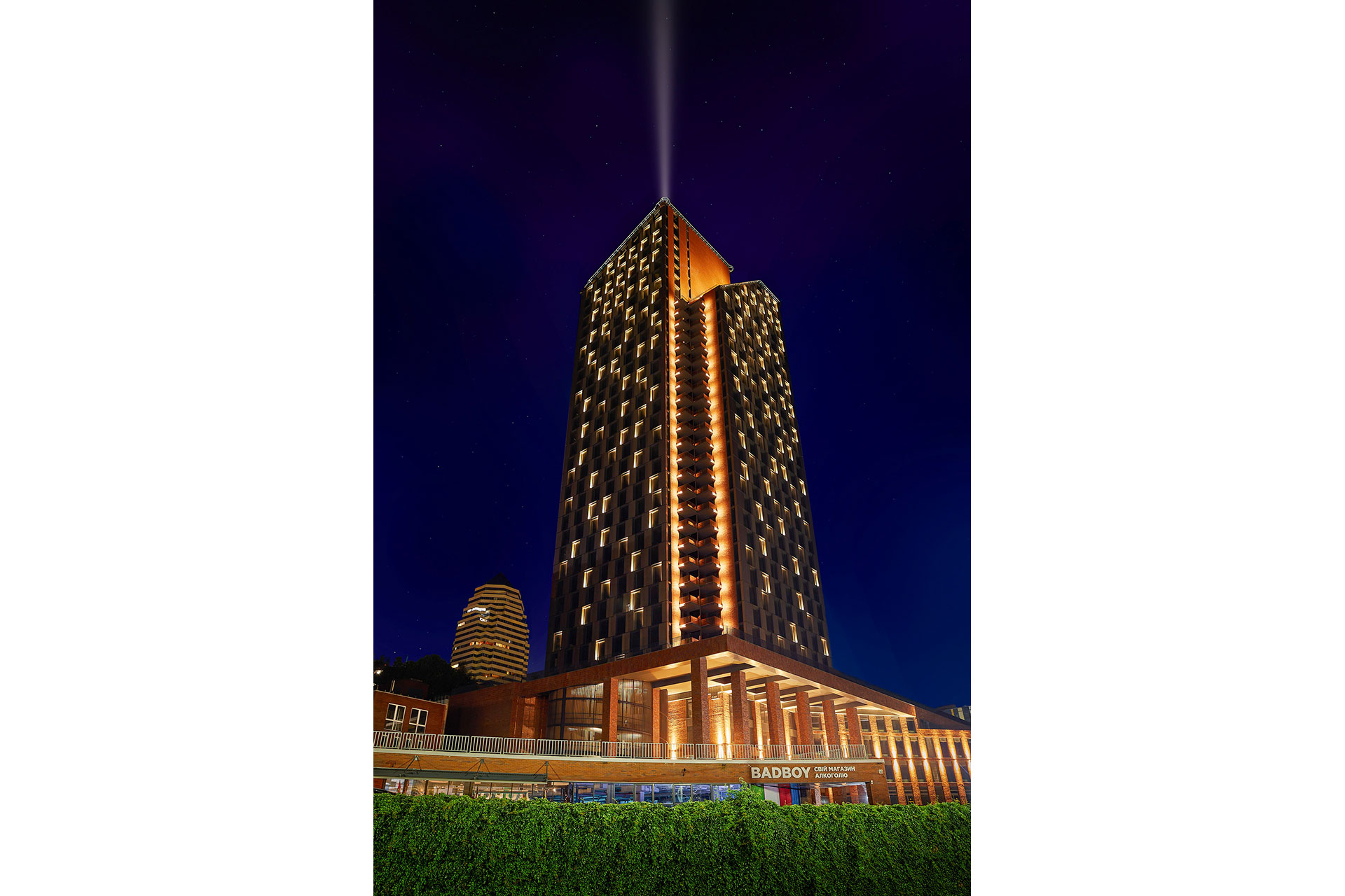 A symbolic beacon rises from the tallest part of the building, creating a “lighthouse” effect visible from multiple points across the city.