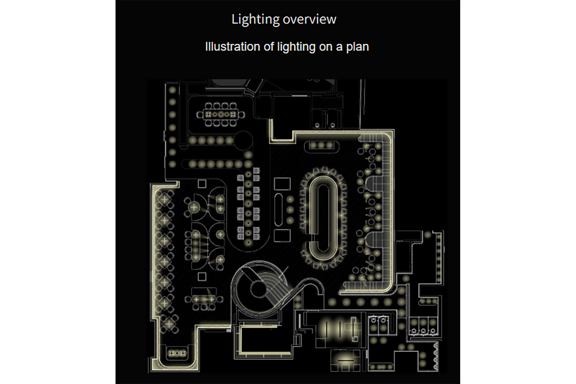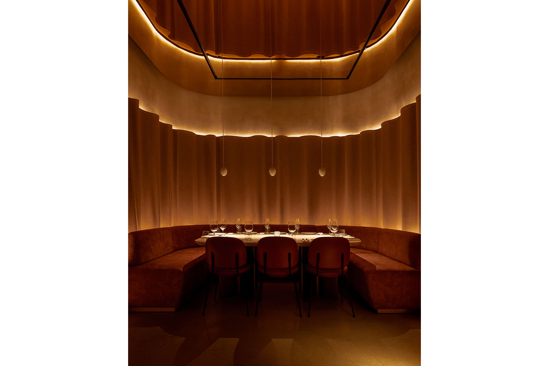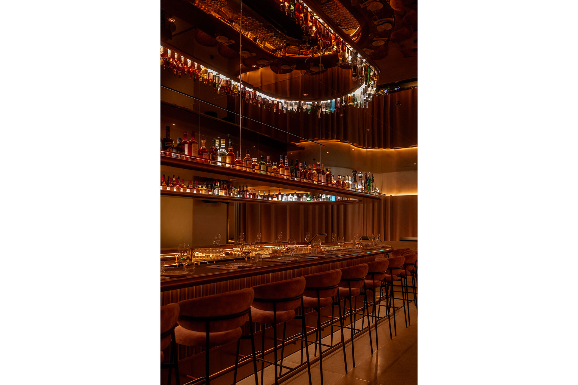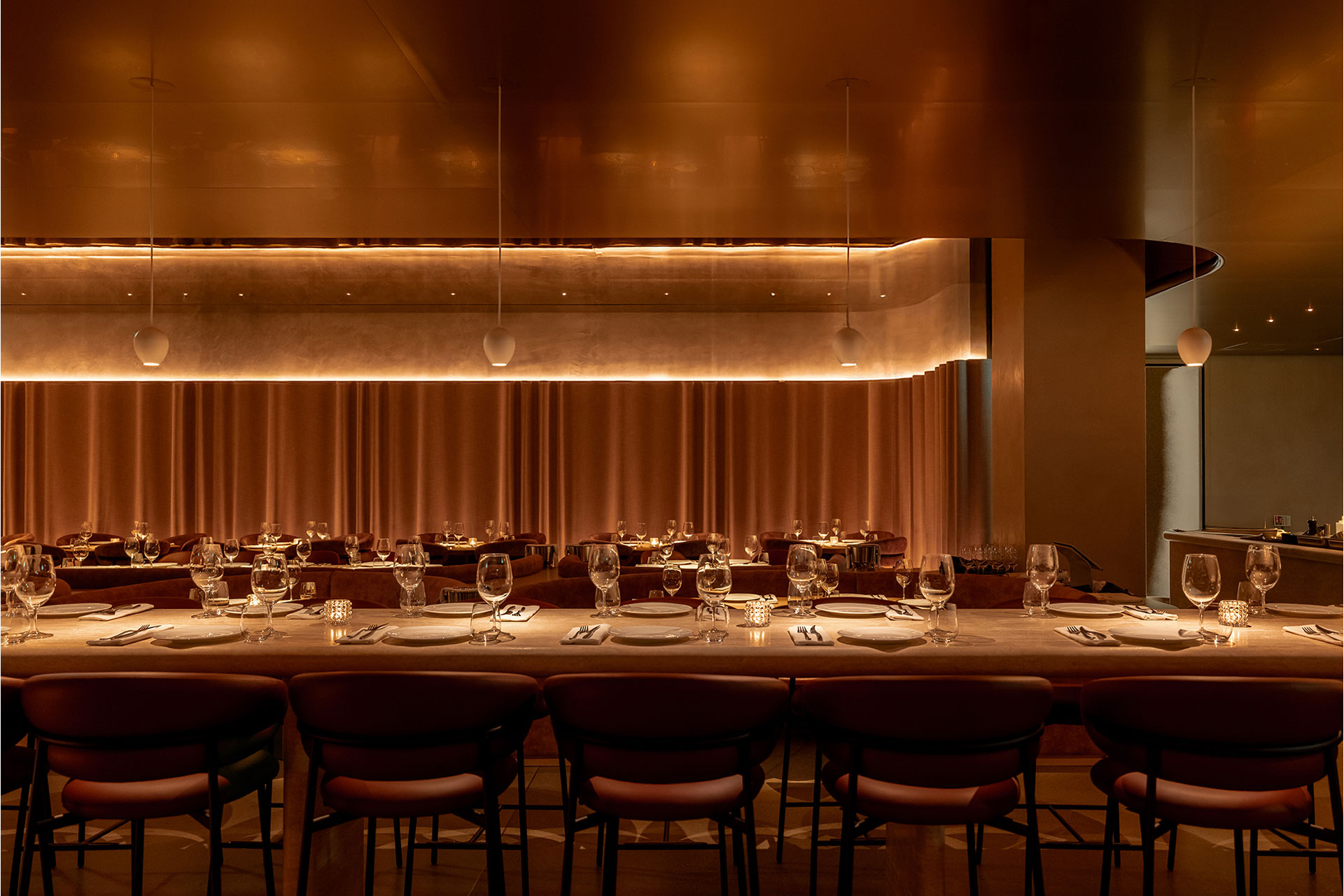 Lighting design at the Mr. Porter London Steakhouse is a key element of the dining experience, blending functionality with a dramatic aesthetic to create a sophisticated and intimate atmosphere. The lighting works to highlight the restaurant’s luxurious materials and unique design features while guiding the guest’s eye and creating a sense of privacy and warmth.The design uses a variety of lighting techniques to achieve its effect. Low-level ambient lighting, often from hidden sources or recessed fixtures, establishes a moody, exclusive feel. This is complemented by accent lighting, which spotlights key architectural elements, artwork, or the textures of materials like copper and brass. Pendants and chandeliers, often sculptural in nature, serve as both functional light sources and artistic focal points, drawing attention and adding a sense of grandeur to the space.This layered approach ensures that while the overall light level is subdued, specific areas like tables are well-lit for diners. The use of warm colour temperatures adds to the inviting ambiance, making the space feel comfortable and luxurious. In essence, the lighting at Mr. Porter is a deliberate design choice that transforms the dining room into a stage, where the food, the decor, and the guests are all part of a curated, theatrical experience.