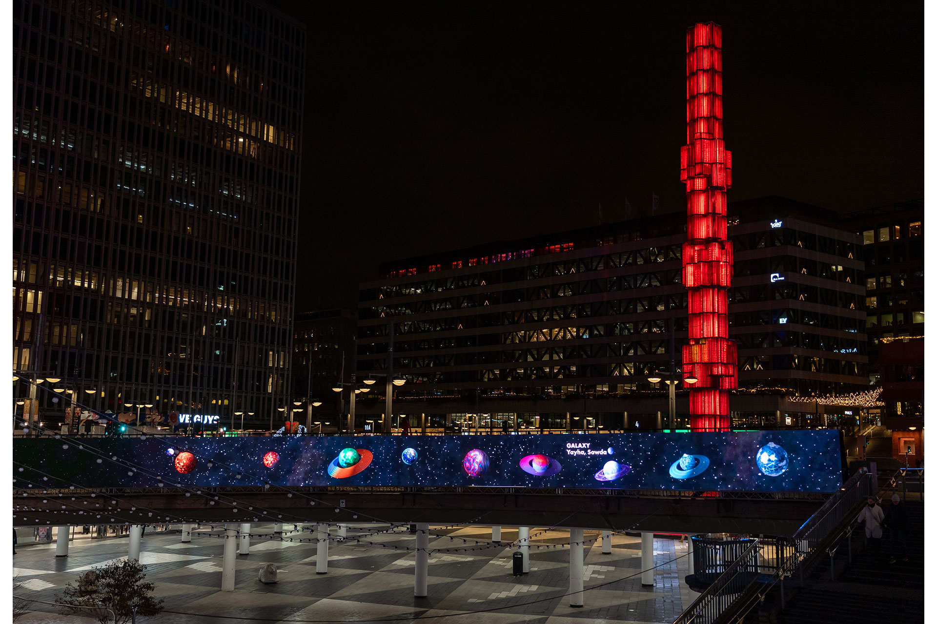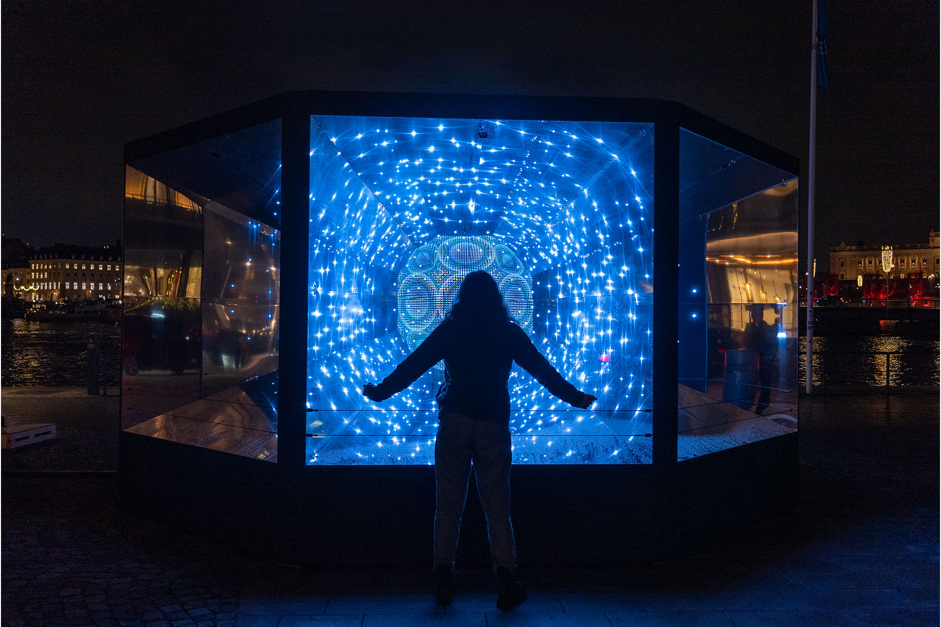 After five years of focusing on large-scale shared light experience in central Stockholm, the festival was invited to reimagine its future and Tensta, a suburb 20 minutes outside the center, offered a unique and vital context. Tensta is shaped by strong and diverse communities and responding to this rich context, the program was curated with a collaborative approach. Rather than delivering art from the outside, the installations and events in Tensta were co-created with local stakeholders through dialogue and workshops. 50% of the artworks directly involved locals ranging from preschool children, to sewing groups, lego clubs, writing circles, youth tech hubs and elderly communities.