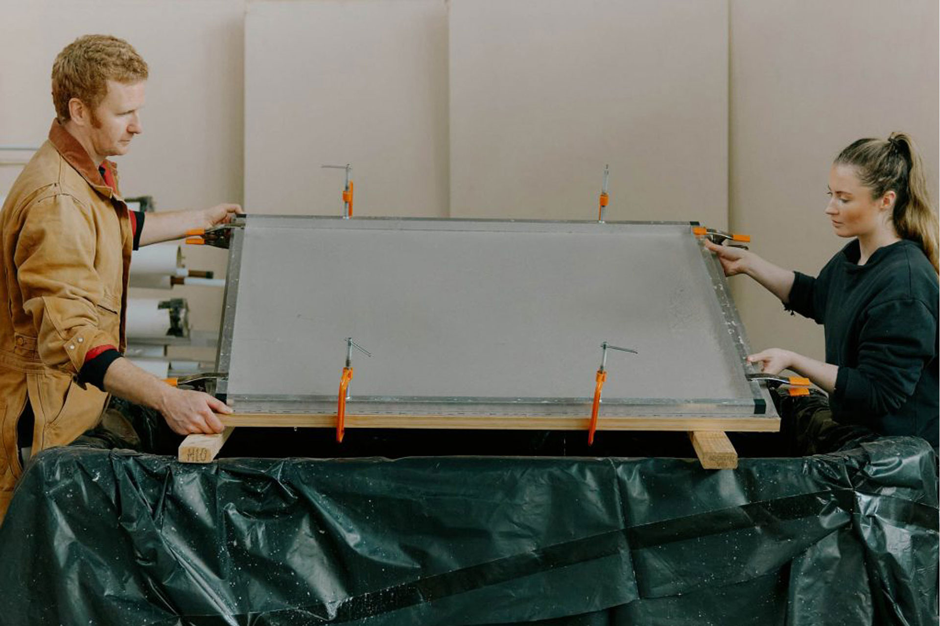 Responding to client concerns around book waste, the design transforms surplus into spectacle and was inspired by the Japanese papermaking technique of Nagashi-zuki. A year of development led to the creation of a refined pulp and processing method, ensuring strength, quality, and optimal light transmission. Custom pulp baths and frames were constructed, enabling the fabrication of large-format handmade paper panels. Each sheet bears the unique textures, tones and translucency of its origins; turning waste into a material of beauty. Every panel is therefore a one-off artwork, celebrating craft, unpredictability and the tactile presence of the medium.