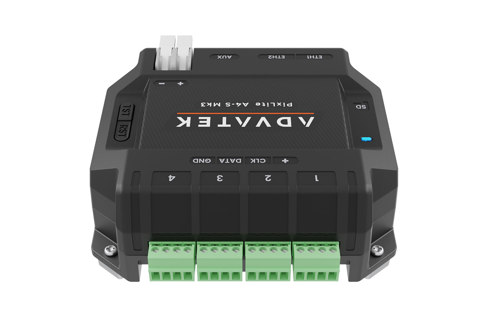 Powerful operational functionality and advanced management platforms drive up to six universes of data on each of its four outputs (24U total) – that’s up to 1020 RGB of powered pixels. These features provide incredible, scalable value for your lighting project. Compared to similar products, you’ll need fewer Advatek controllers to manage the same number of pixels, producing a low cost per pixel output, an unrivalled cost per universe, and the highest value per controllable pixel.