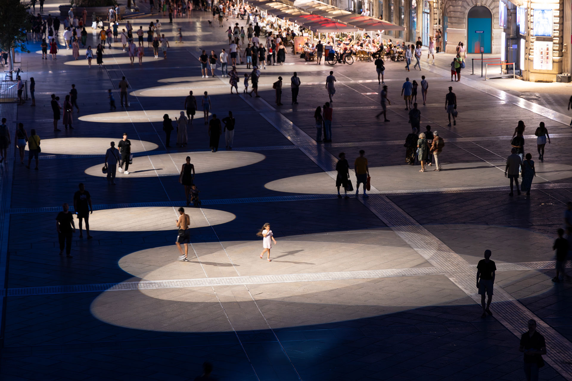 At nightfall, the heart of Montpellier is reinvented. Place de la Comédie, a veritable open-air stage, is adorned with new lighting that combines theatrical poetry, heritage enhancement and sober, welcoming spaces for strolling. The Esplanade also takes on a soft glow, perfect for evening strolls.