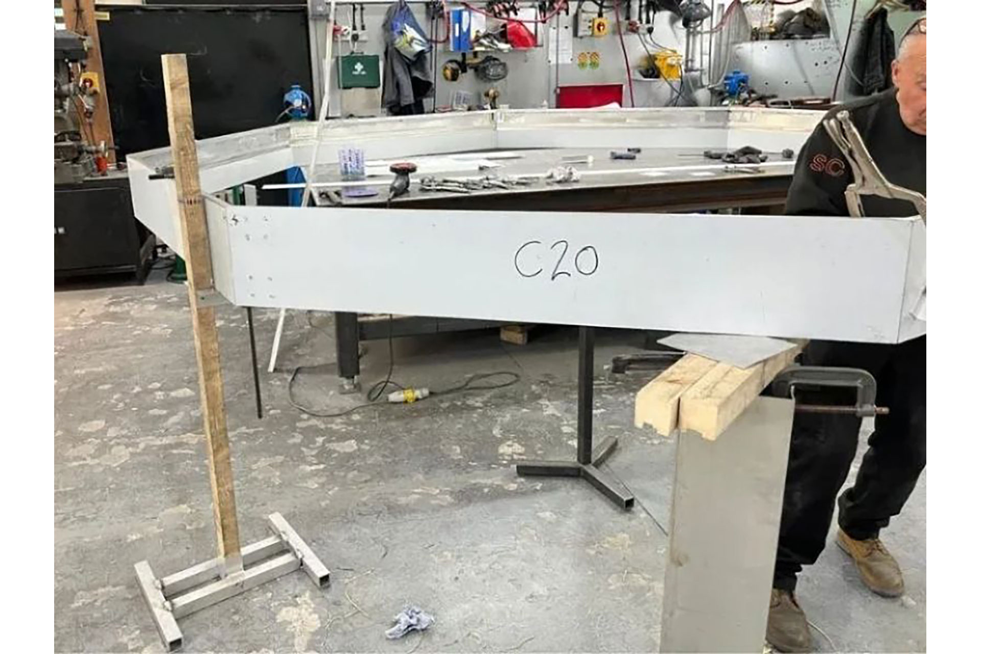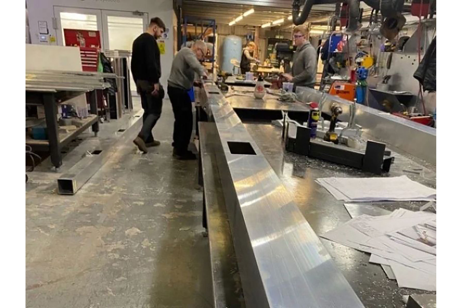 To achieve ultra-thin, interlocking octagons with integrated lighting, Studiotech developed a 25mm aluminium profile with internal cavities for wiring and recessed LED strips. Each octagon was modularly constructed in sections to enable precise installation across the 70‑metre span. A bespoke gantry was suspended from the roof between the chimneys, and incorporates a bespoke telescopic movement-suppression joint that provides controlled flexibility, accommodating any potential movement while maintaining structural integrity.