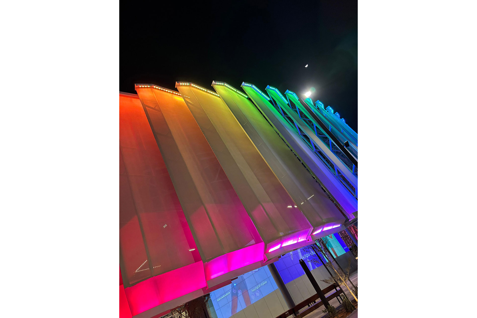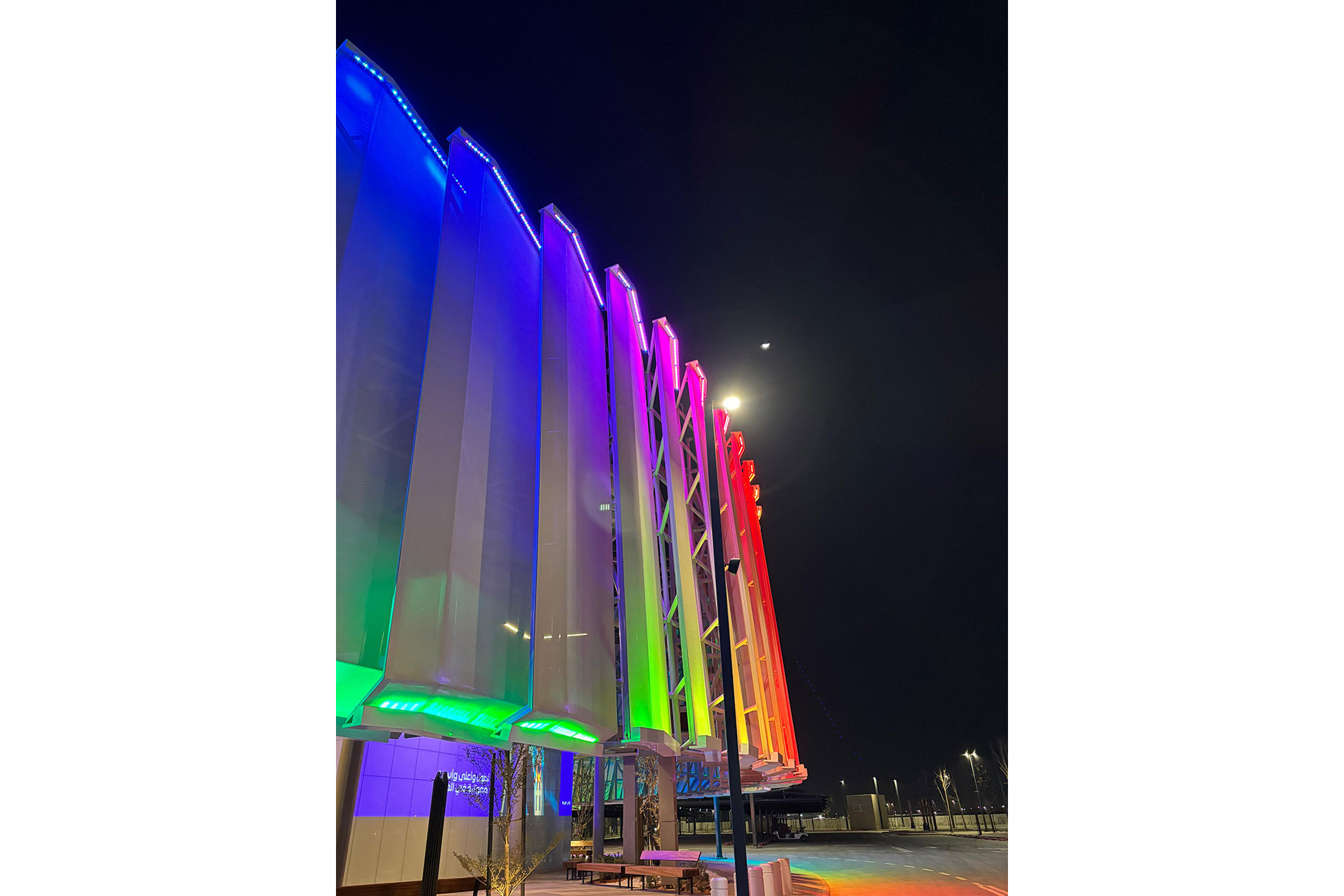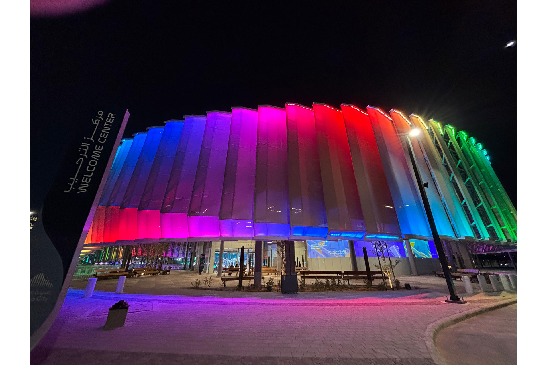 Architecturally, the Welcome Center is defined by bold geometries and layered surfaces. The lighting strategy responds by reinforcing depth and rhythm through controlled illumination, carefully balancing highlight and shadow. Light is applied selectively to articulate key architectural lines, folds, and structural gestures, allowing the building to read clearly at night without overwhelming its form. This restraint ensures that the architecture remains the protagonist, with light acting as a precise and intentional enhancer.