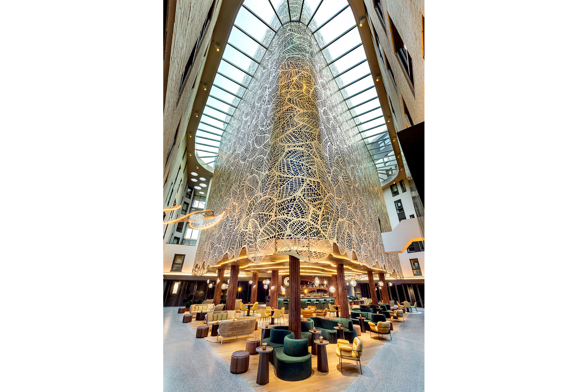 The lighting design for the Renaissance Amsterdam Hotel is a meticulously crafted response to a rich conceptual framework rooted in local narratives, tactile materials, and immersive spatial experiences. At the core of the design are themes such as Finding the Light, Biophilic Dreams, Floating Florals, and Amber is The New Red Light, which collectively emphasize natural forms, organic growth, and a contemporary reinterpretation of Amsterdam’s cultural and historic identity. The lighting supports these ideas by blending intensity, texture, and warmth to bring each conceptual layer to life.