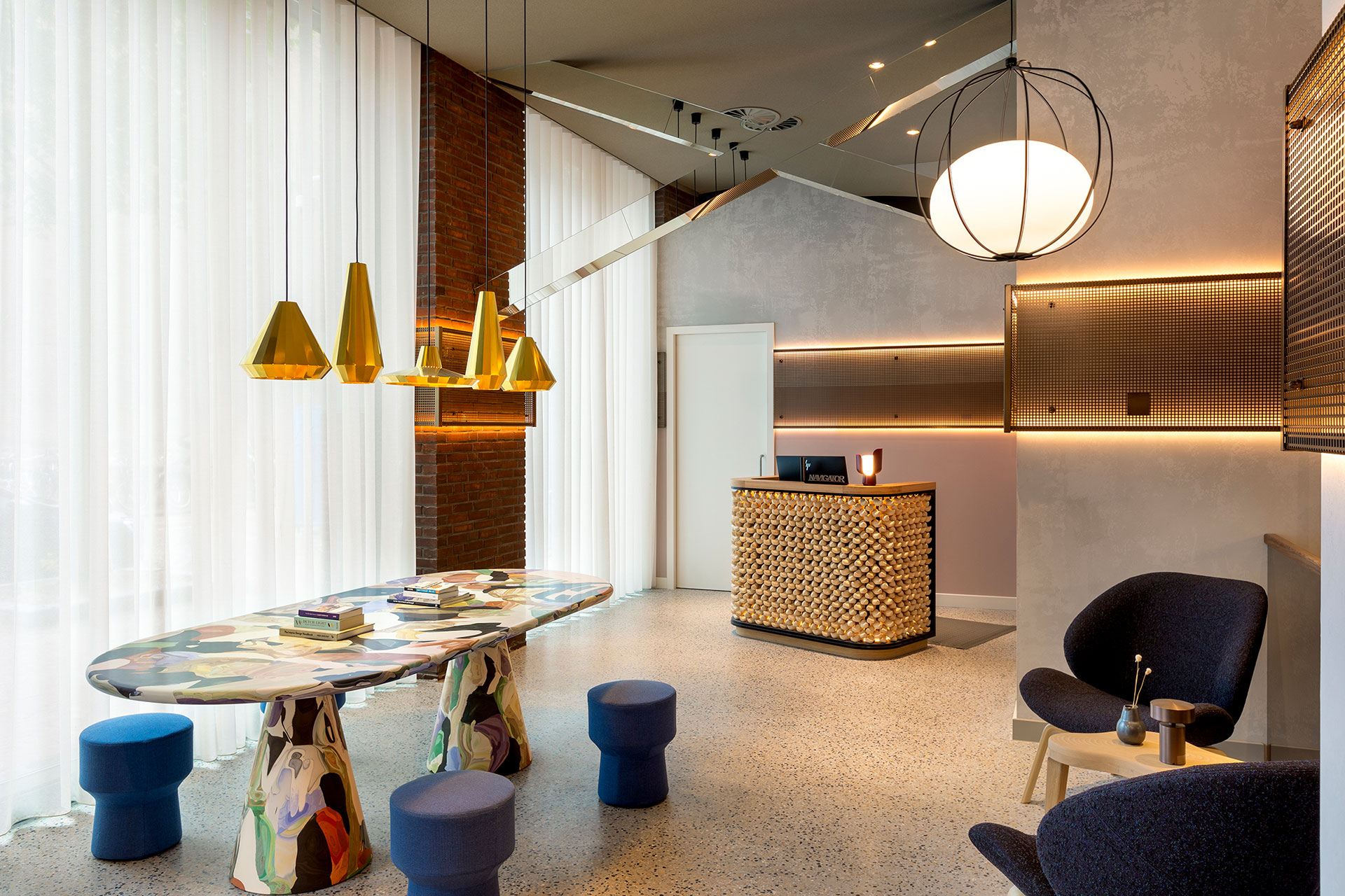 The design harmonizes seamlessly with the architecture and interior finishes by using concealed and integrated light sources that follow the rhythm of materials, organic shaped joinery, and structural geometry. In public areas like the Bar & Lounge and the Lobby, timber ceilings embedded with LED strips echo natural contours and growth patterns, enhancing spatial flow and connecting the interiors with the city landscape. Warm amber glows and organic sculptural pendants echo the inviting vibrancy of the city’s red-light history, now reimagined.