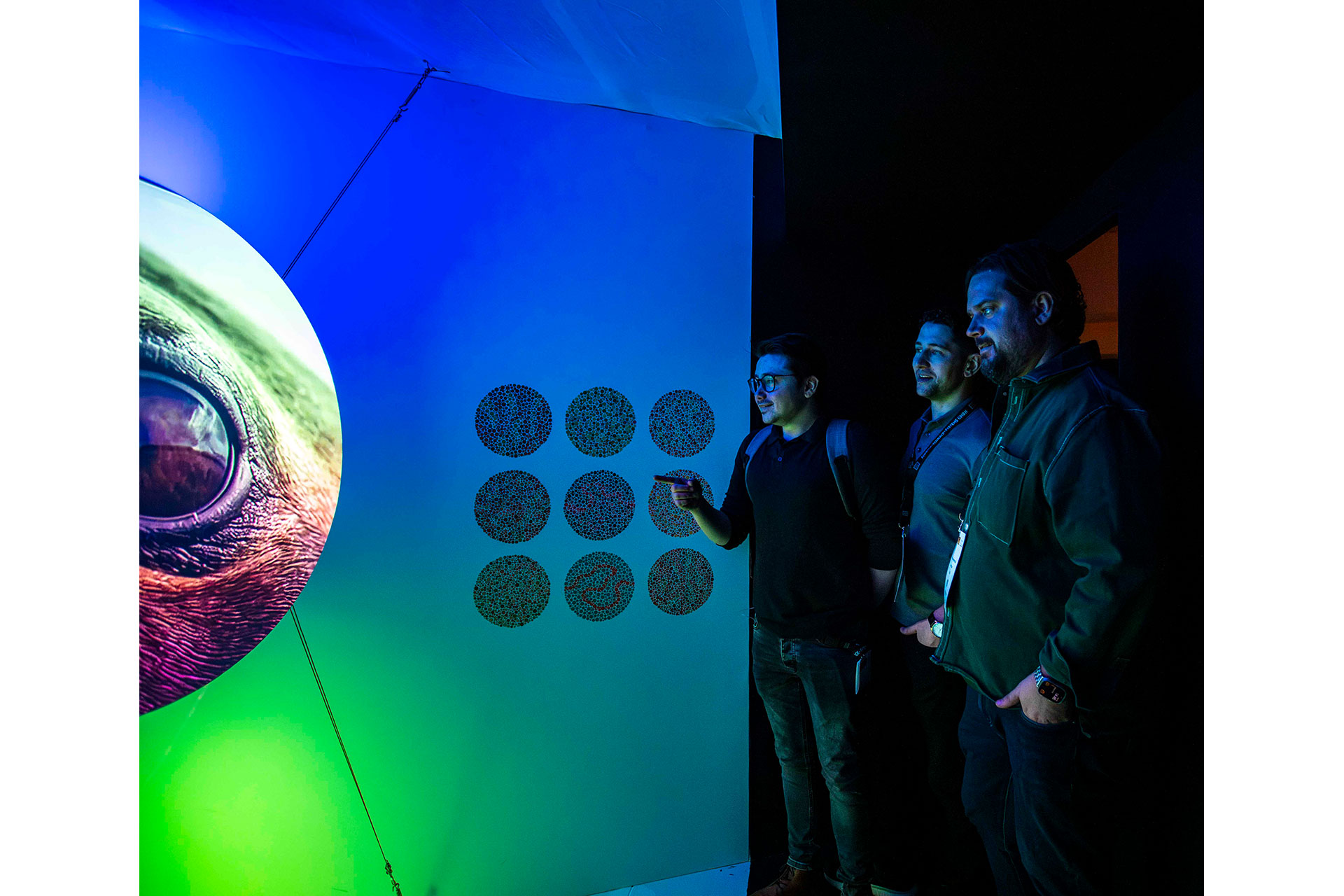 Re:Vision invited LiGHT 25 visitors to step into a world of light and perception – a sensory journey that challenges how we see and understand the visual experience of other species. Using custom spectral profiles and reimagined Ishihara colour blindness test patterns, the installation explored how different life forms perceive colour and light in ways entirely distinct from our own.