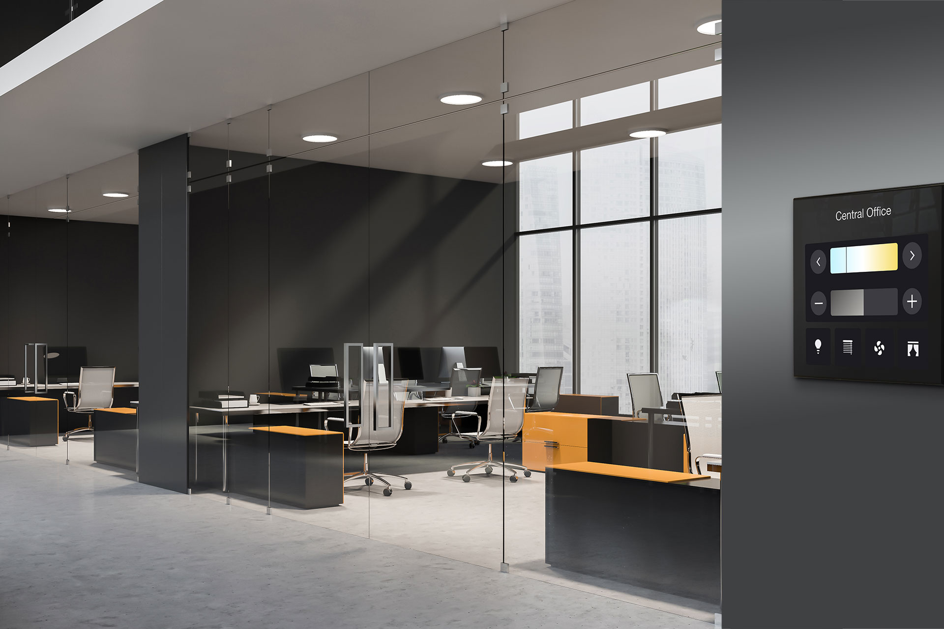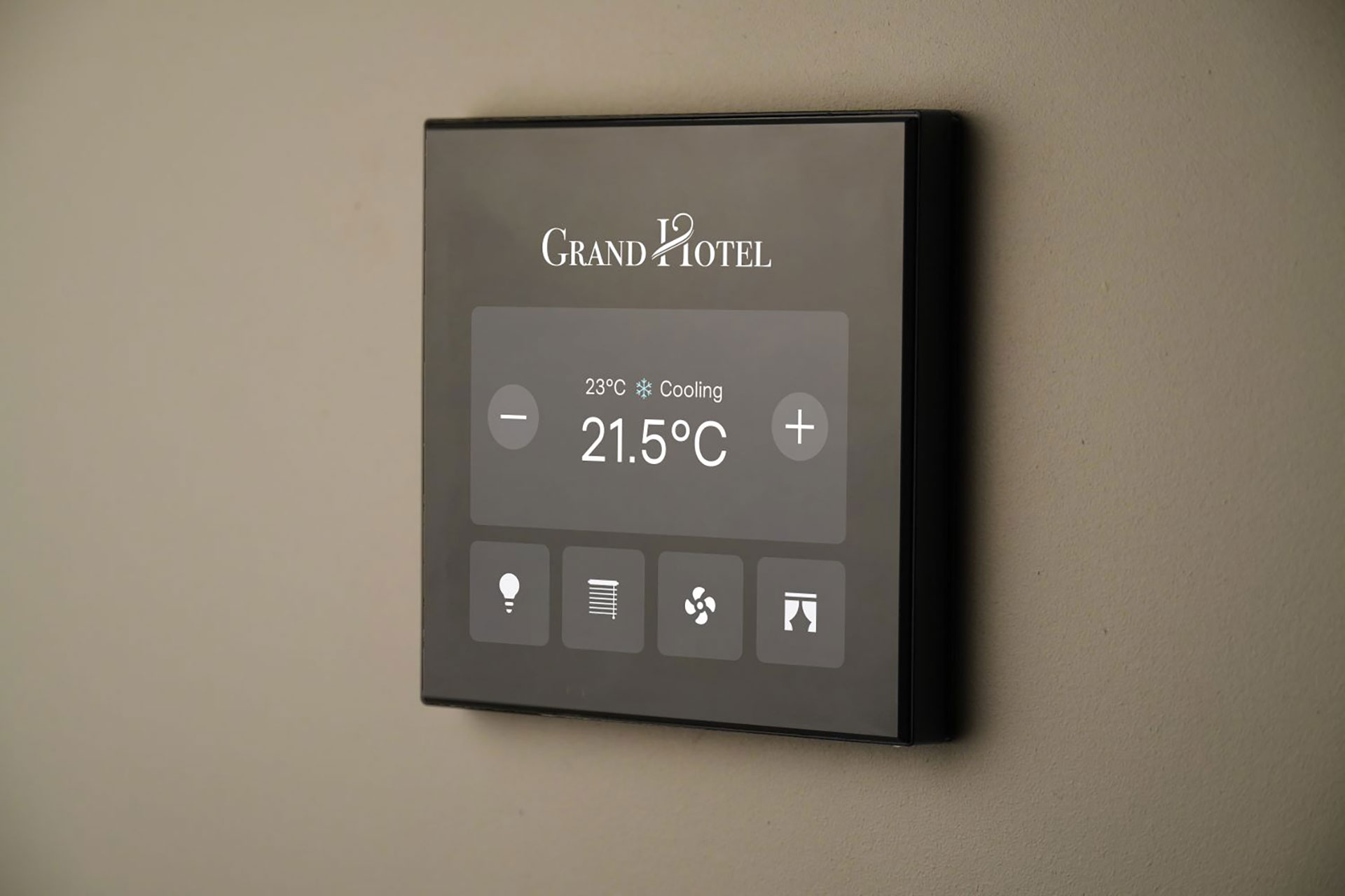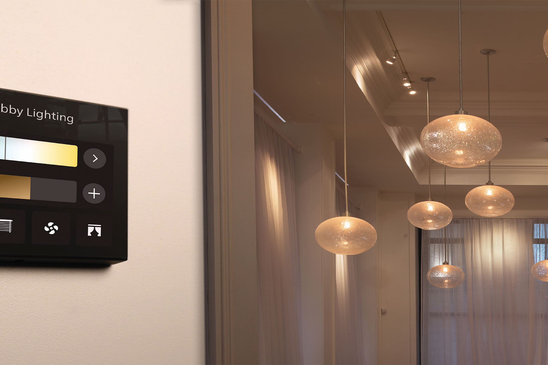 Revolution Display is a contemporary full-colour capacitive touchscreen that dynamically responds to user presence. Add up to 16 configurable pages of control widgets to perform a variety of functions, from lighting scene selection and opening/closing window coverings to fan/ temperature setpoint adjustment and advanced custom macros.
