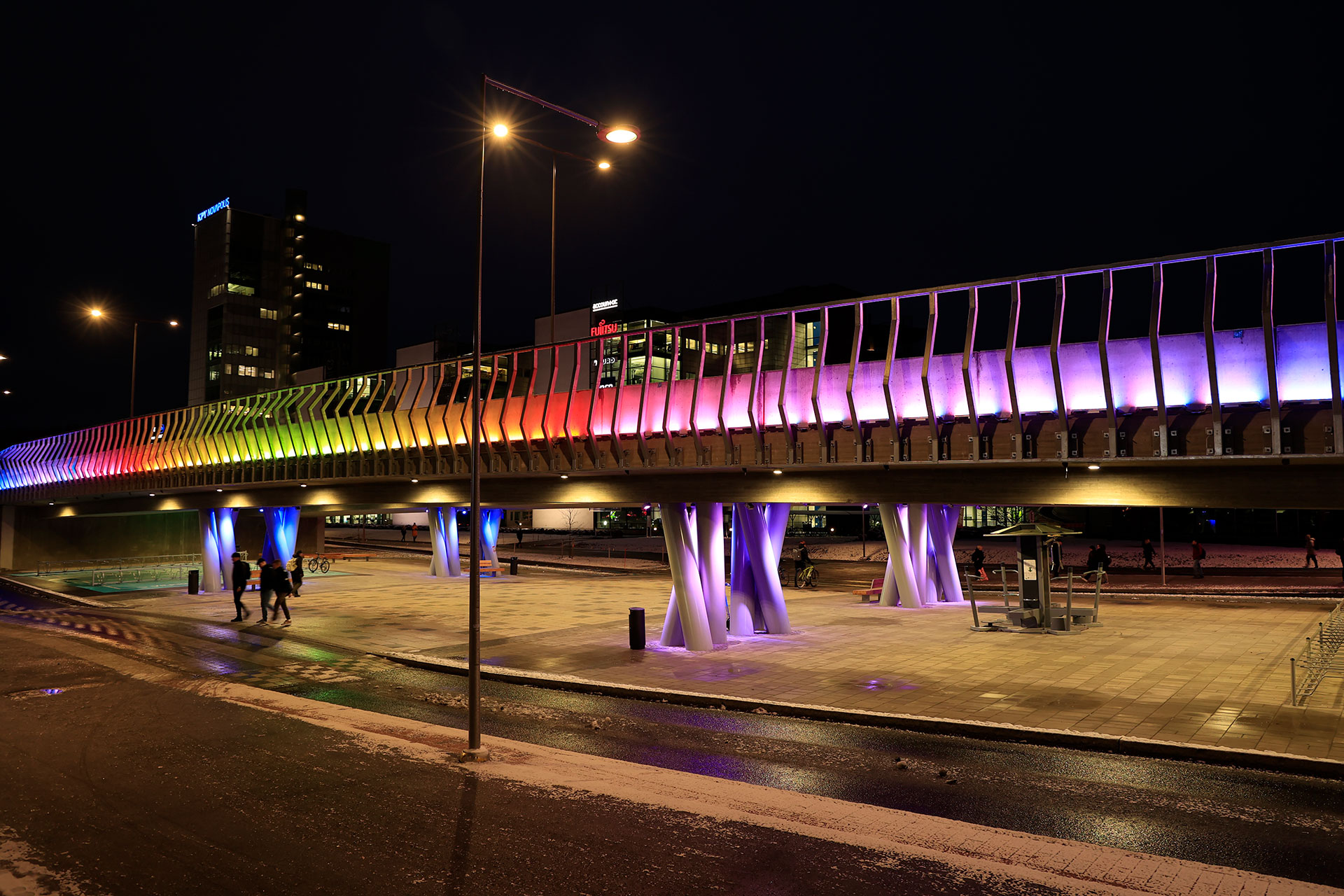 Savilahti’s unique natural light has inspired us to utilise light in developing the area. The Circle of Light, or Valon kaava, project is an overall idea of light in every corner of Savilahti. Through art, light creates experiences. It brings the area together and strengthens its distinctive character and identity. In Savilahti, light is present in the names, art, design, lighting, and the utilisation of natural light. Light is also a special area of expertise for the local educational institutions and businesses. Light is landmarks, signage, and events. It is an emotion, a feeling, an activity: the light of life, brilliant thoughts and bright moments.