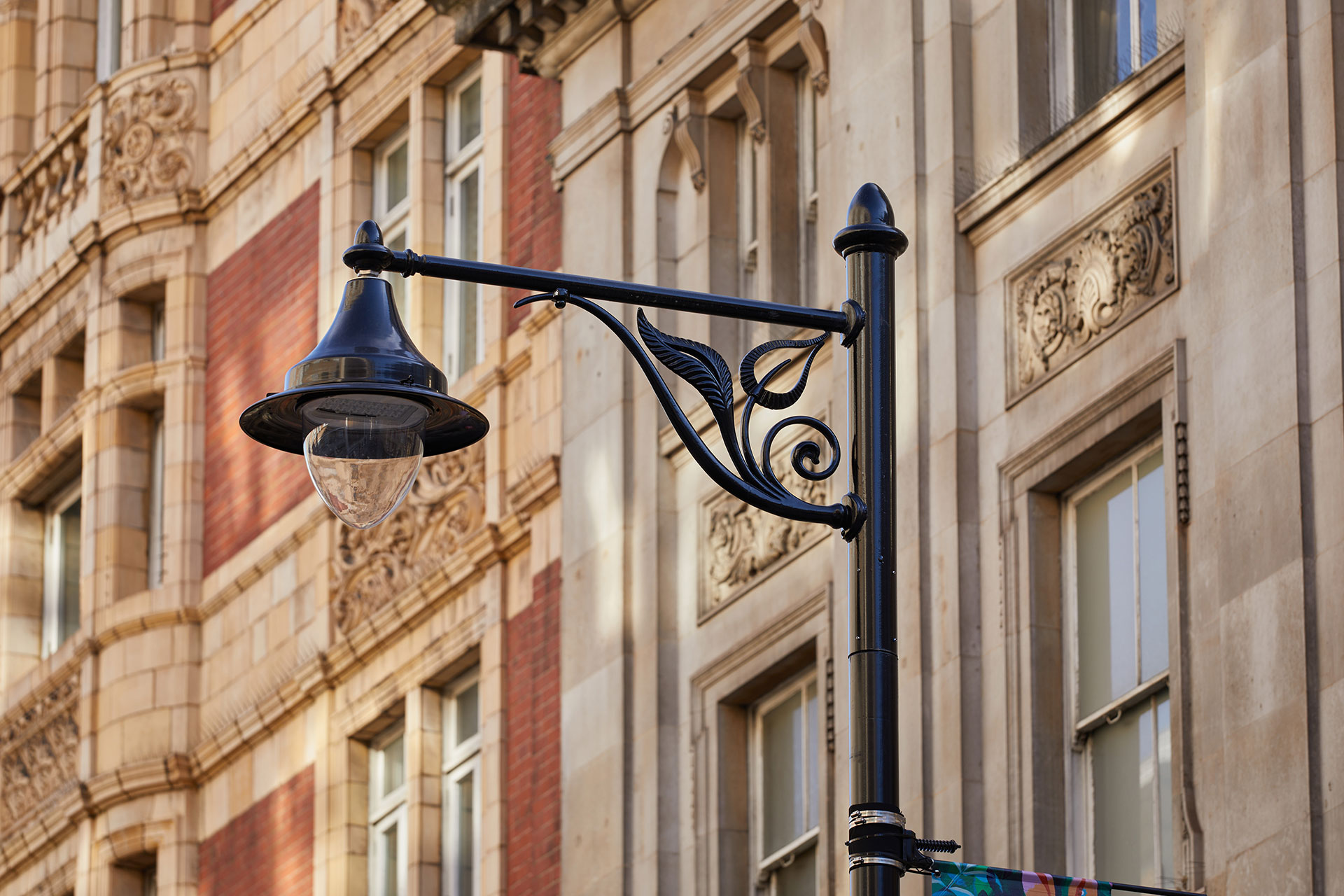 Collaborating with Cadogan, Urbis Schreder, The Ironwork Studio and John McAslan and Partners a bespoke column was produced delivering an aesthetic that wasn’t to be found on the existing lighting market. The column was part of a lengthy design process exploring multiple design typologies ultimately culminating in a more traditional aesthetic. Inspiration was taken from Holy Trinity Church and its arts and crafts influenced interior.