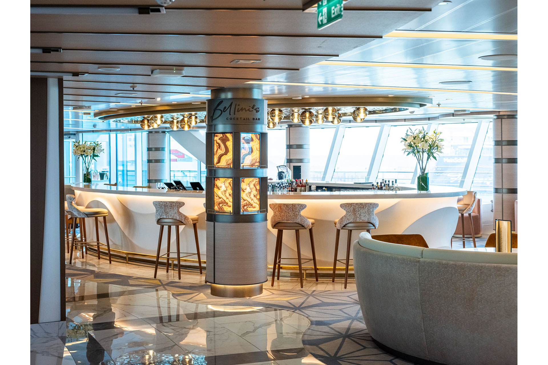 Building on the technological success of SUN Princess, STAR Princess’s central Piazza is both an architectural centerpiece and a dynamic experiential environment. The space combines open dining venues, a performance area, and three-deck-high convex windows framing expansive ocean views, with a flowing layout designed to encourage guests to mingle throughout the heart of the ship.
