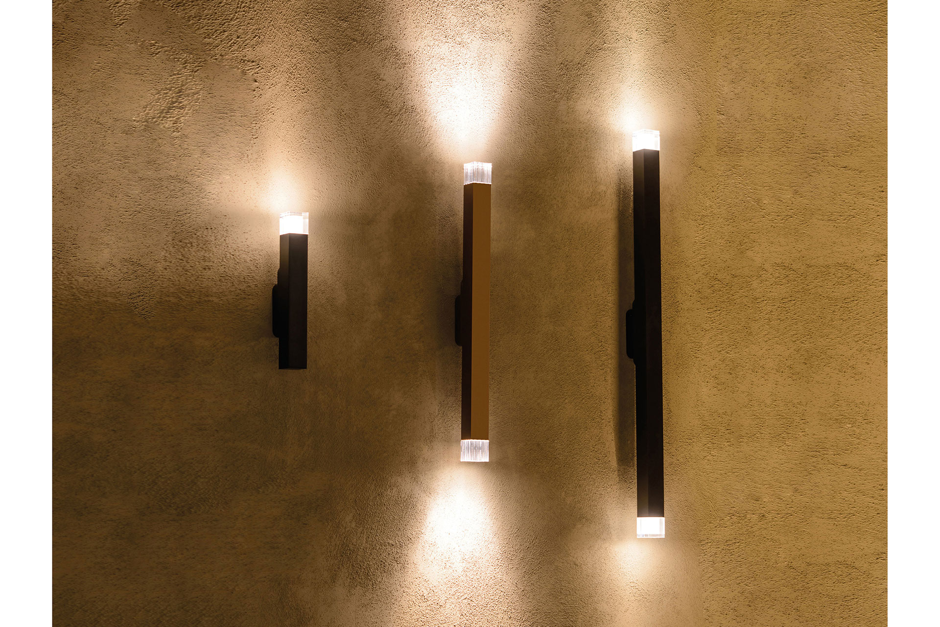 Five lengths, from 220 mm to 1100 mm, enable flexible compositions. All versions except the shortest include three mounting points, supporting both symmetrical and asymmetrical arrangements.