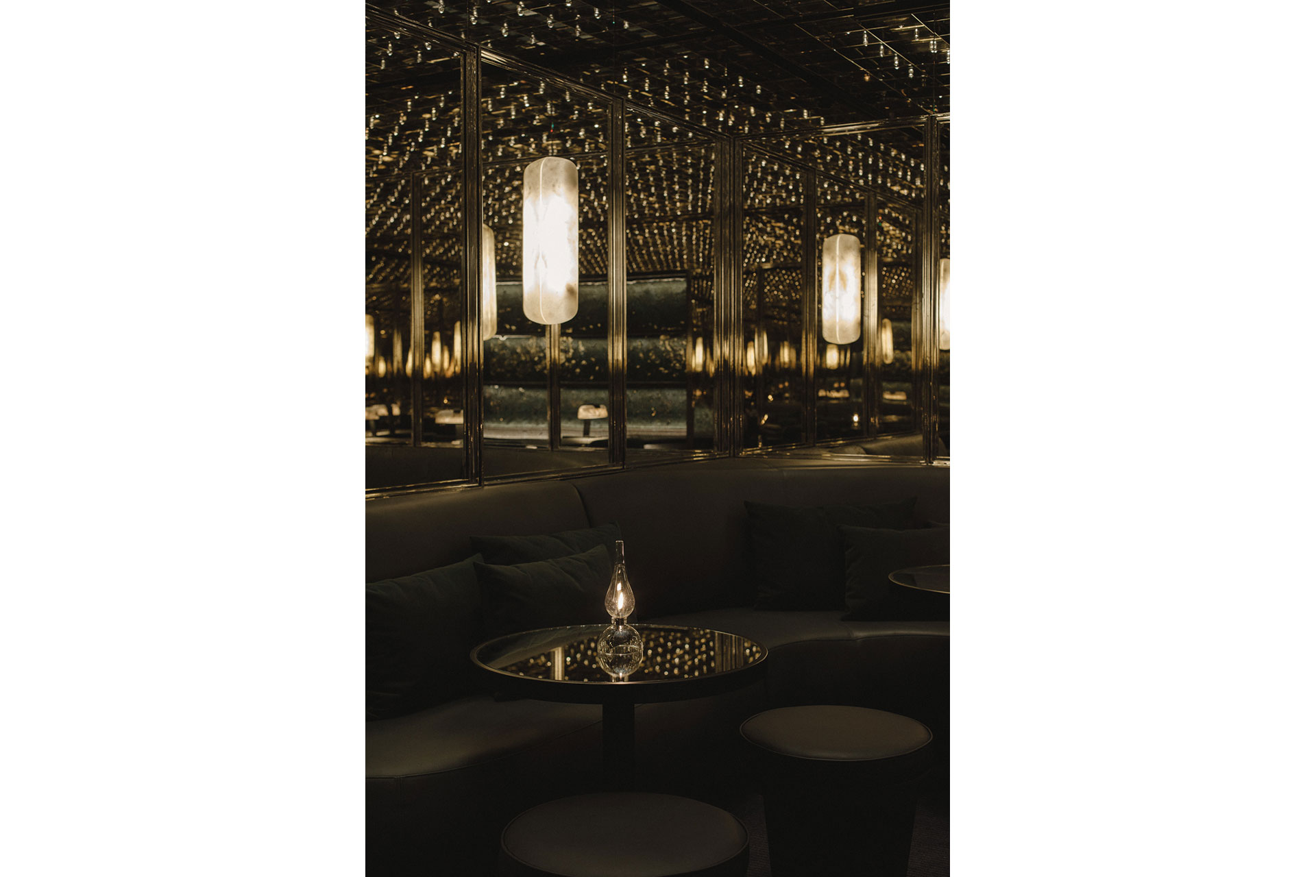 Descending the stairs, you are greeted by the Mirror Room, a cocktail bar where the play of reflection takes center stage, transforming the space into a seductive threshold between the bustling city above and the sensory experience that follows. Over eight hundred points of light flirt with perception and depth, multiplying endlessly across mirrored surfaces to create the illusion of an infinite space, where shifting intensities of light choreograph a moment of pause.