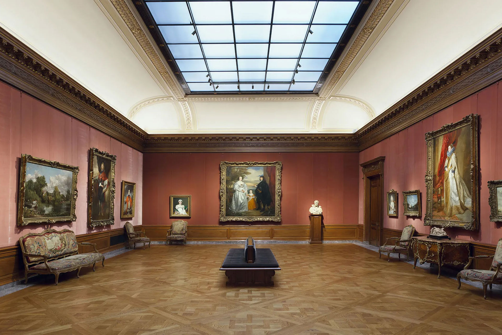 Natural and artificial light were harmonized to support both the display of art and the visitor experience. In the renowned skylit East, Oval, and West Galleries, L’Observatoire collaborated with daylight consultants L+U to develop a new laylight system that redirects sunrays parallel to the floor surface, preventing glare on paintings through a honeycomb interlayer. A secondary system of LED fixtures, concealed in the skylight attic, maintains consistent light levels during cloudy conditions and throughout the day. Additional art illumination is provided by accent lighting from tracks carefully integrated at the underside of the laylight millions.
