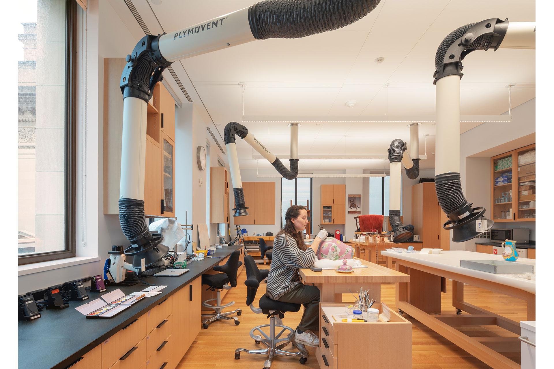 In education, conservation, and administrative areas, lighting systems prioritize glare control, high efficacy, and flexibility, while still harmonizing with the architecture and room finishes. Featuring pendants with up- and downlight distribution, task-integrated casework lighting, and daylight, these workspaces can meet varied needs.