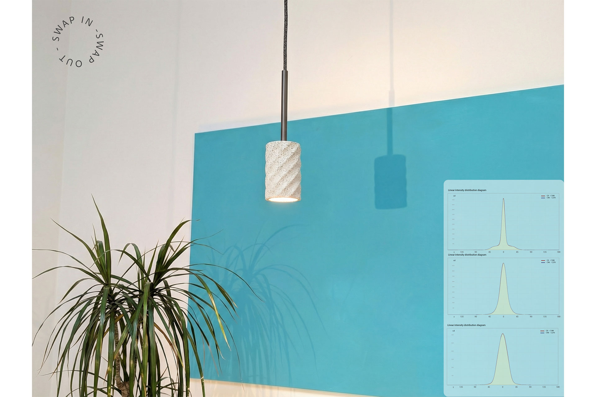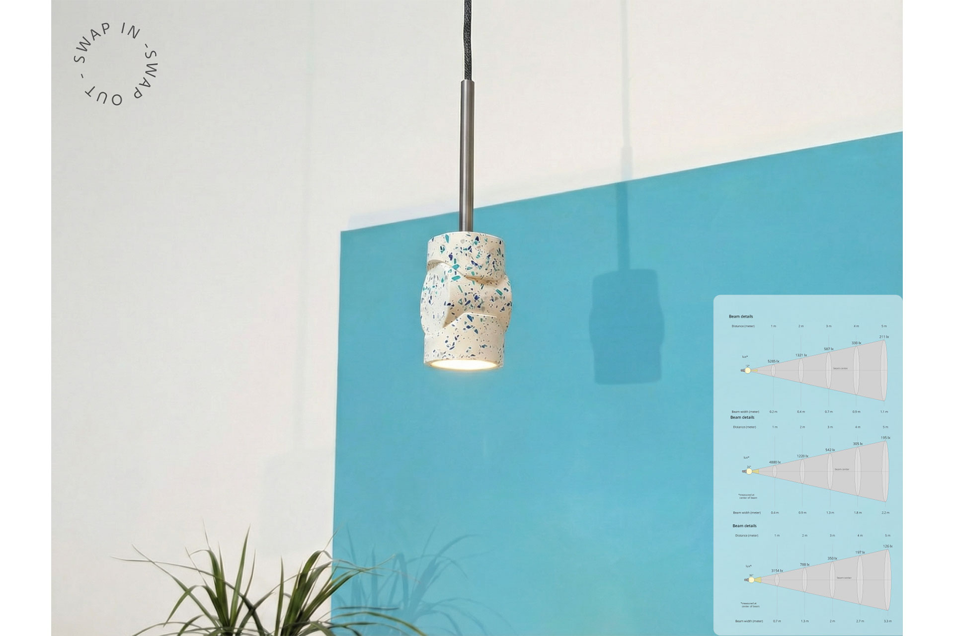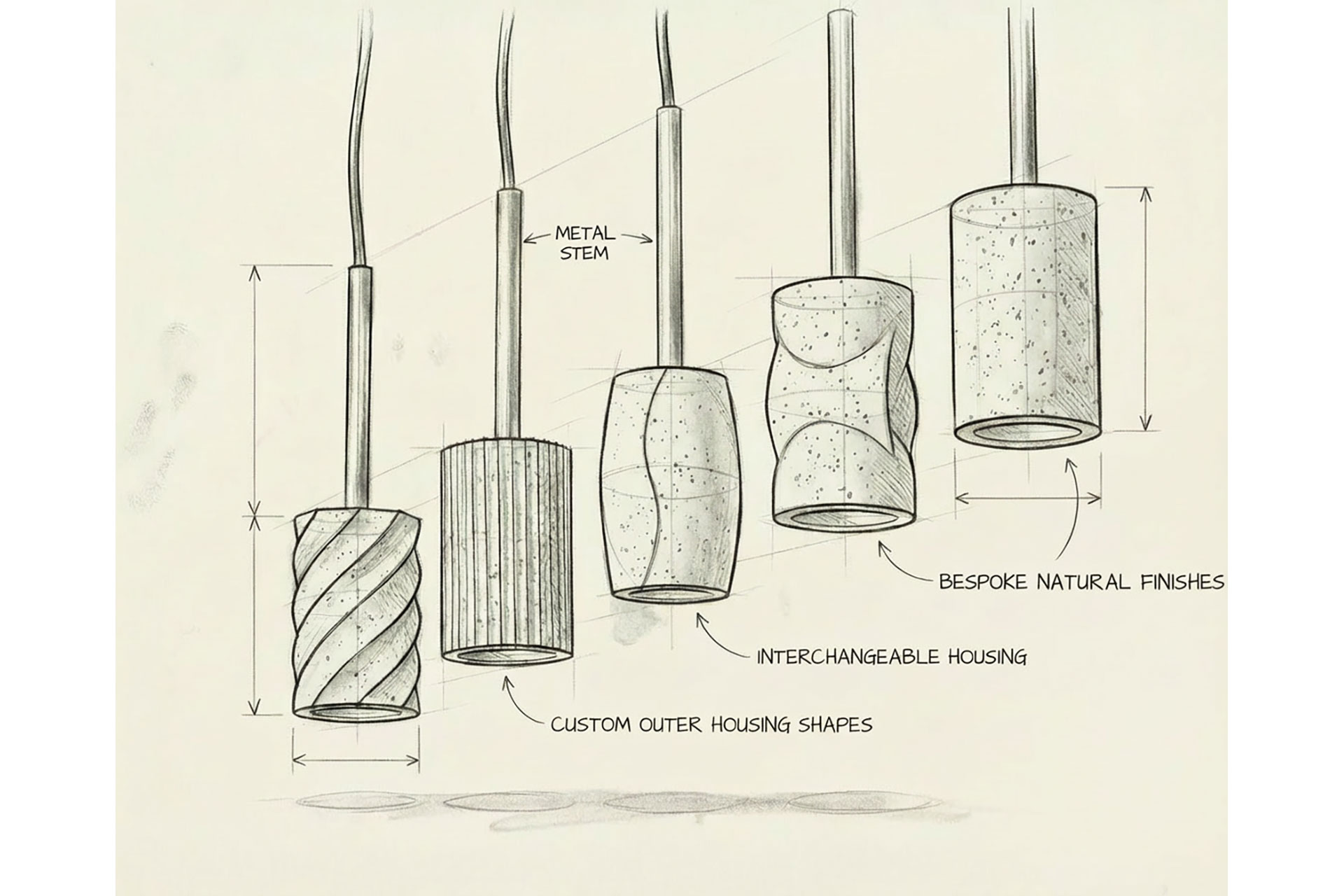 A 60-SECOND REFRESH We wanted to get away from the static nature of traditional lighting. The Minor Descent uses a refined, tool-less friction-fit that lets you swap the entire aesthetic in under a minute. Because the inner core is a permanent installation, the look can be updated or refreshed without the need for additional wiring or ceiling works. The technical spec stays fixed, but the visual finish is completely fluid.