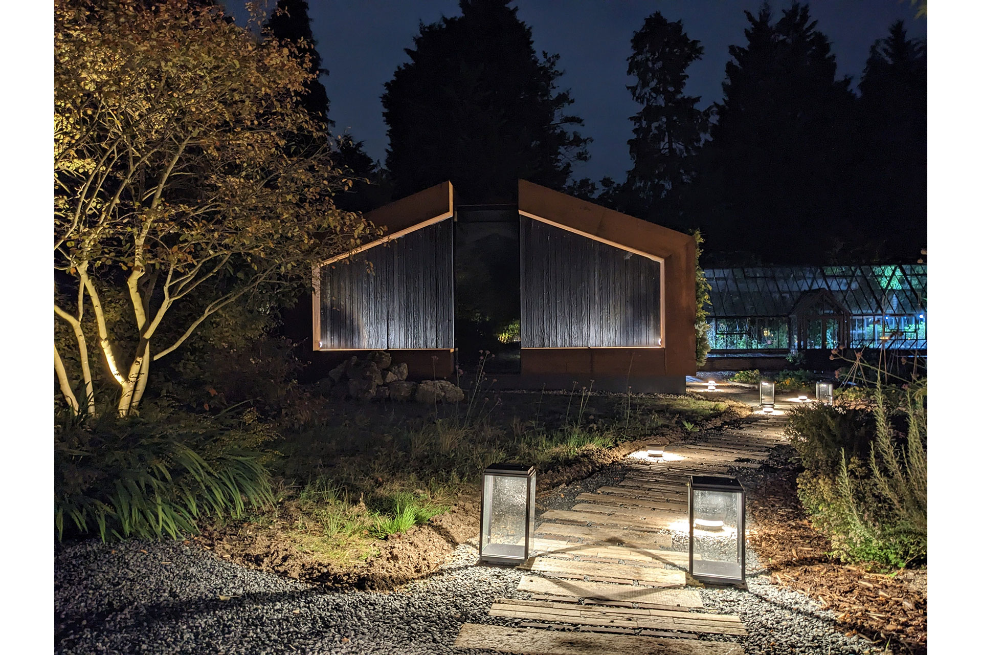 Set beside an existing greenhouse, the 150 sqm pavilion is a contemporary reimagining of traditional geometry, integrating effortlessly with the existing property. SHH achieved this through careful consideration of materiality and scale. The use of Japanese charred timber and Corten steel brings richness and warmth, contrasting beautifully with expansive glazed openings. A living wall and green roof foster biodiversity while anchoring the structure in its natural surroundings.