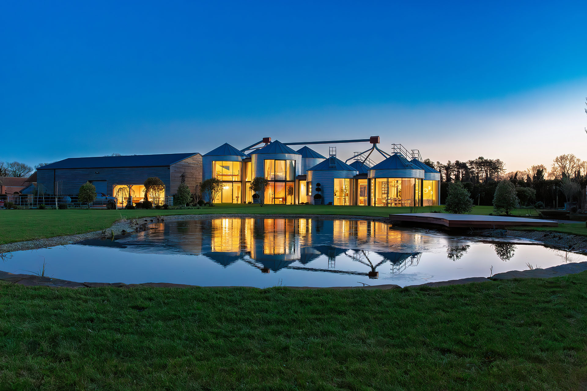 The Silos began life as part of a Victorian model farm, built by Lord Rothschild in 1899 as a wedding present for his daughter. The farm was designed as a showcase for modern agriculture, with its striking grain silos at the heart of the scheme. Those silos were saved from demolition and are now at the centre of a dramatic family home.