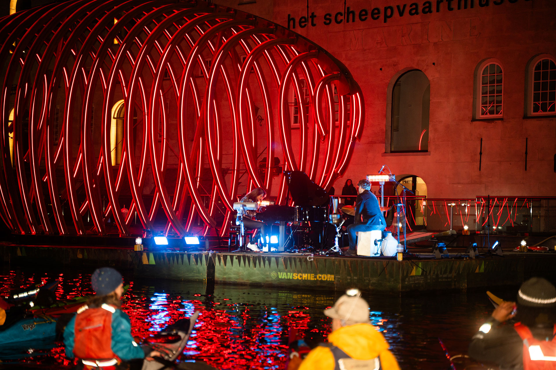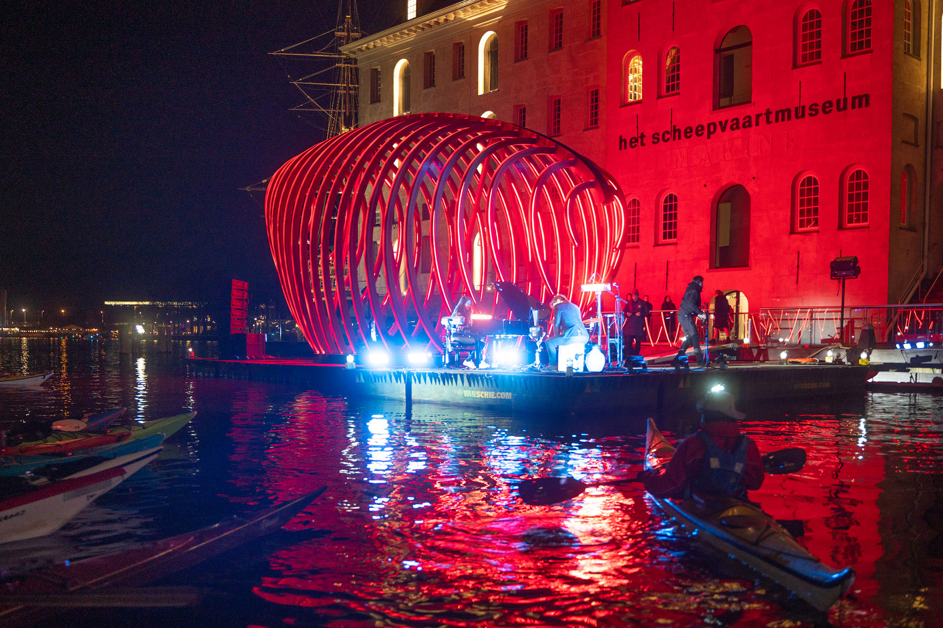 With a specially curated piano performance, Amsterdam Light Festival, Greenpeace, and Het Scheepvaartmuseum joined forces to celebrated the entry into force of a groundbreaking global oceans treaty. The treaty aims to protect 30% of the world’s oceans by 2030. Pianist Iris Hond performed a programme specially composed for this occasion. She sought a connection between the fragility of the artwork and the hope offered by the new treaty. Dozens of spectators in canoes and small boats attended the concert from the water.