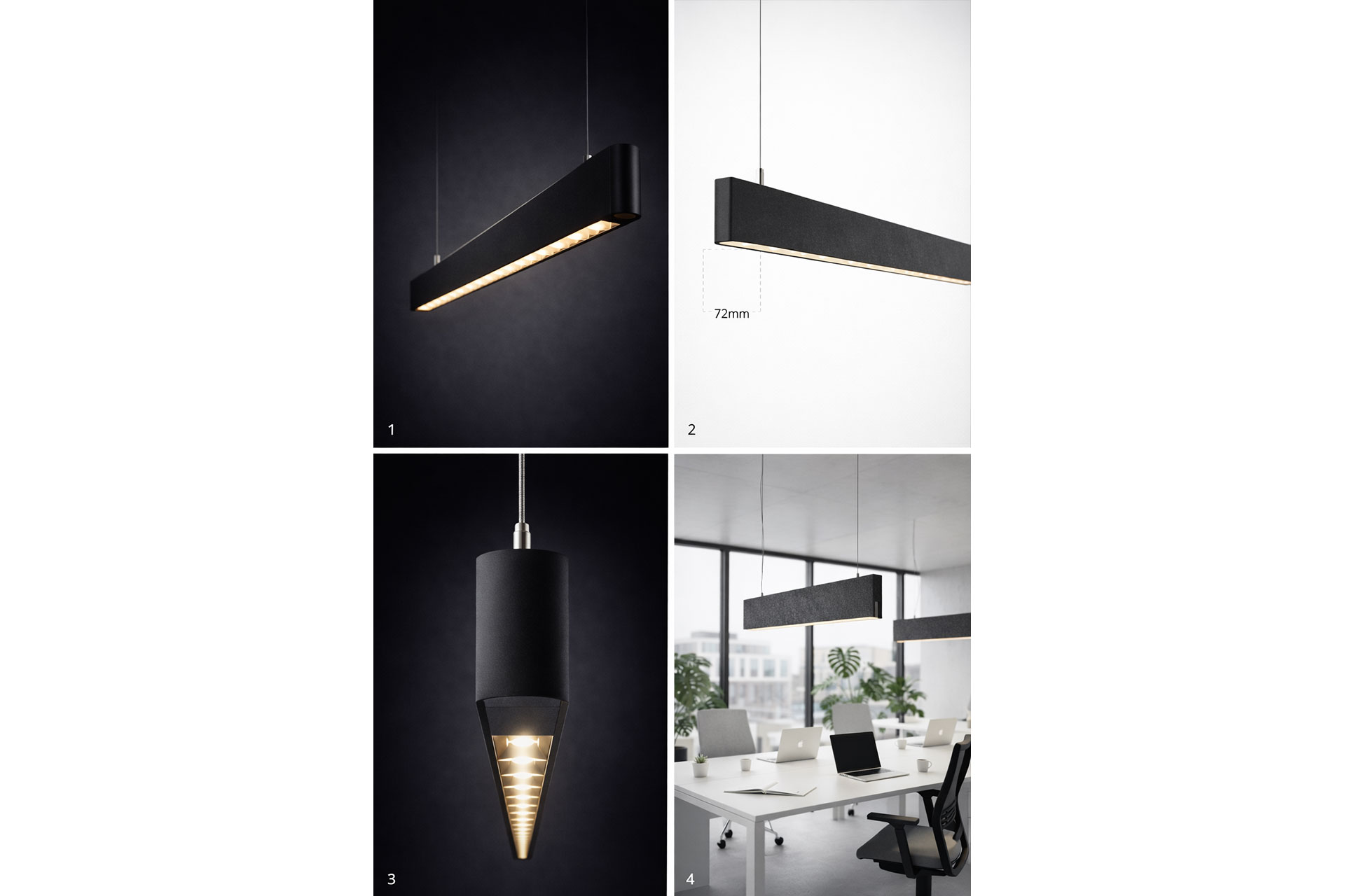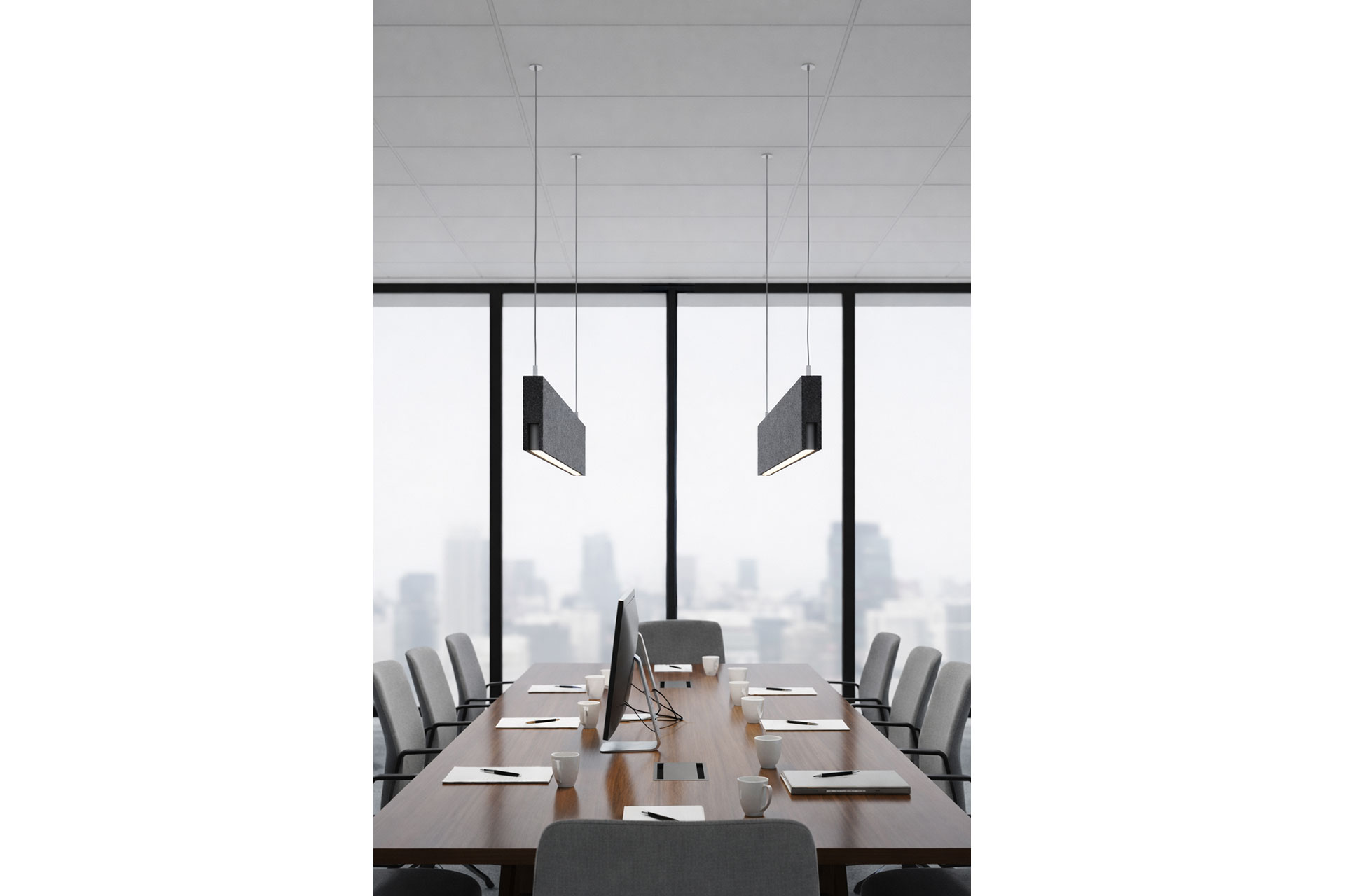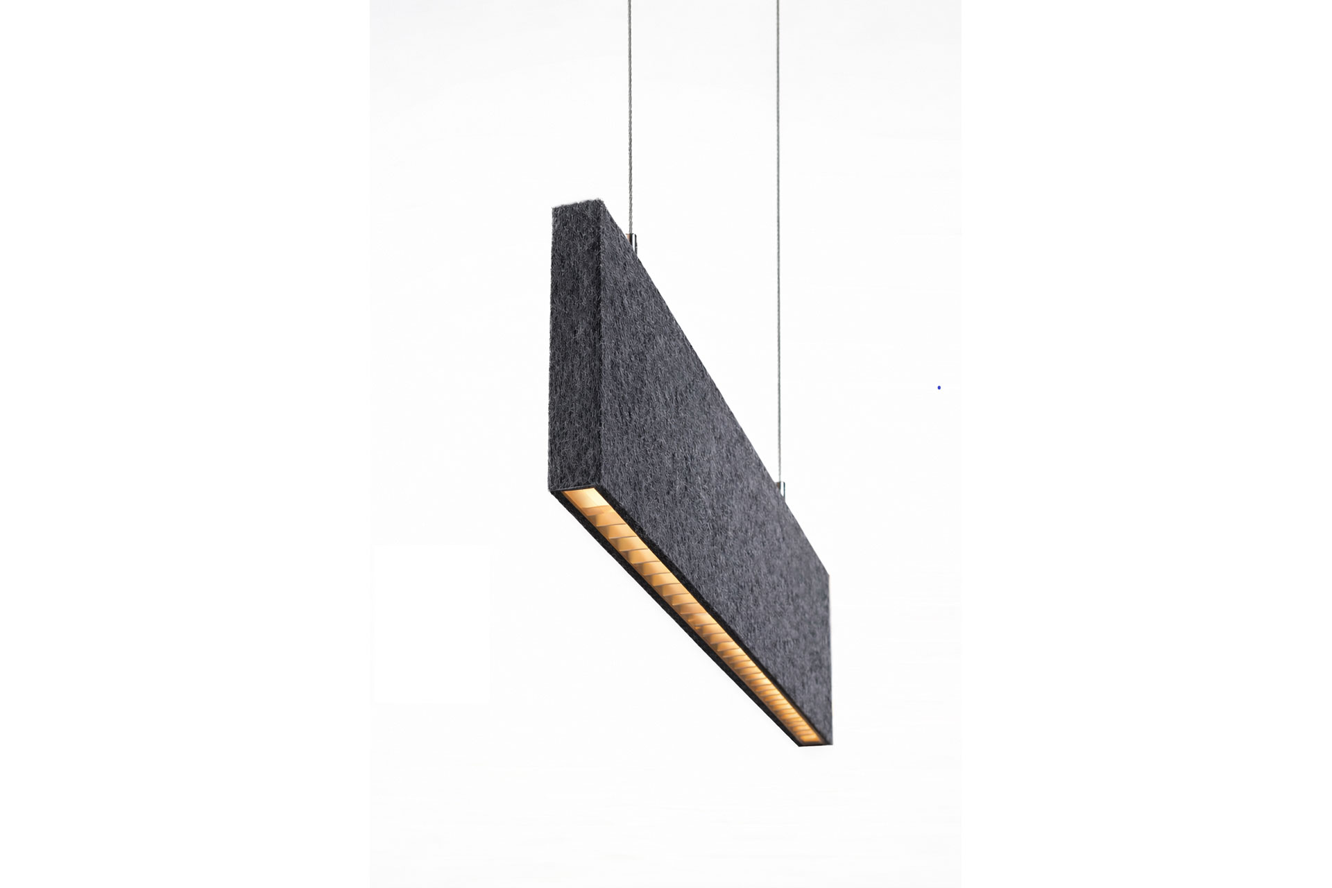 ZERA extends beyond illumination through integrated acoustic capability. The profile can be combined with customised felt panels produced in project-specific dimensions and colours. This configuration creates a dual-function architectural solution that addresses both lighting and sound absorption within a unified design language. The acoustic variation maintains the luminaire’s slender identity while contributing to improved comfort in open-plan offices, educational facilities and collaborative spaces.