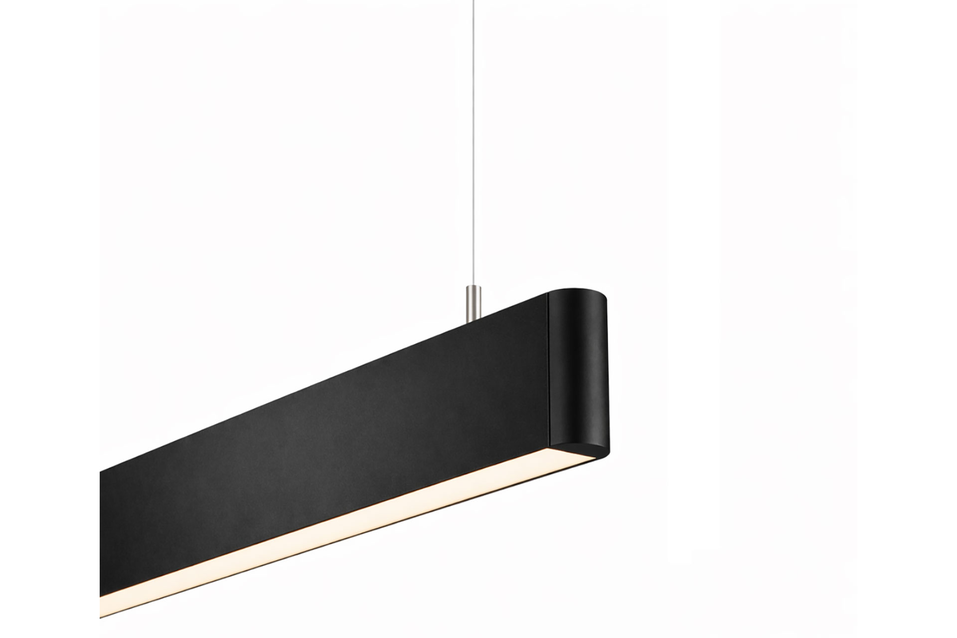 The anodised aluminium body ensures durability and material clarity, while softly rounded end caps temper the rigidity of the linear geometry. This detail refines the technical character of the profile and allows the luminaire to sit comfortably within both minimal and expressive architectural contexts.