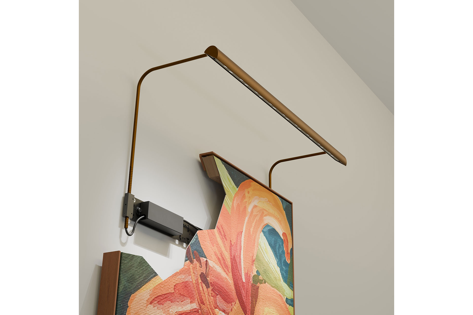 ZTA.PL is available in made-to-order lengths to suit every scale of artwork, from intimate frames to long, panoramic pieces. Its reversible mounting design allows it to be installed either on the wall/mounting surface or on the rear of the artwork itself, offering valuable flexibility in heritage and conservation-led projects. Users can specify remote or integral drivers; where integral is required, a steel-enclosed driver housing provides additional protection and long-term resilience. A wide range of RAL and specialist finishes allow the luminaire to blend seamlessly into carefully curated environments.